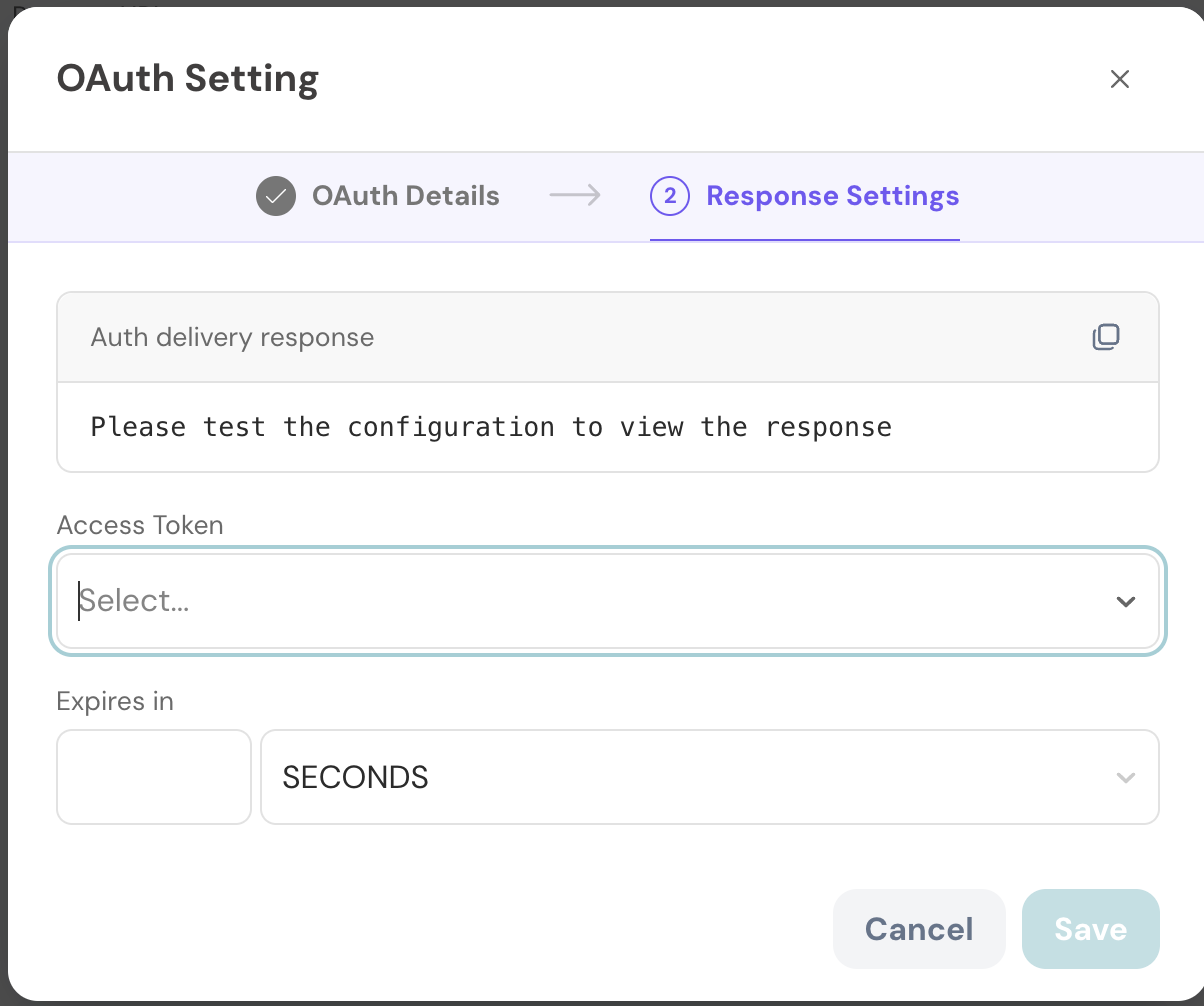 6. Under Response Settings, select the specific access token and define the expiration time. Once the configured time elapses, the token will automatically expire, ensuring enhanced security by limiting the validity period of the token. This approach mitigates risks associated with prolonged token usage, safeguarding sensitive operations and data.