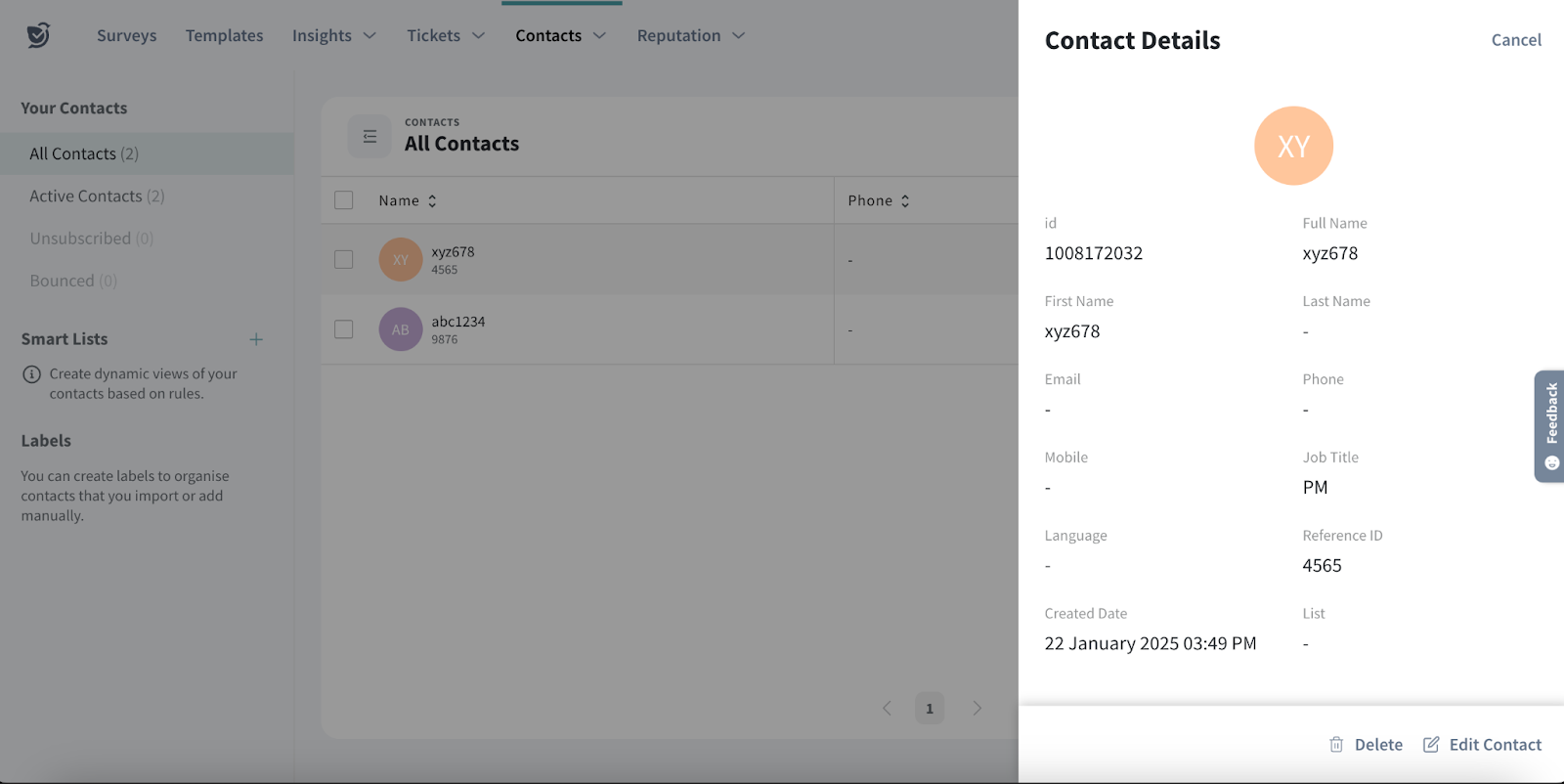 3. You will receive the details associated with the specified Reference ID. The survey email will be automatically triggered to the contact linked to this ID.