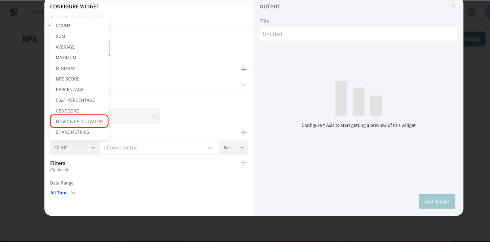 4. On the Y-axis, select Moving Calculation and choose the metric you want to analyze.