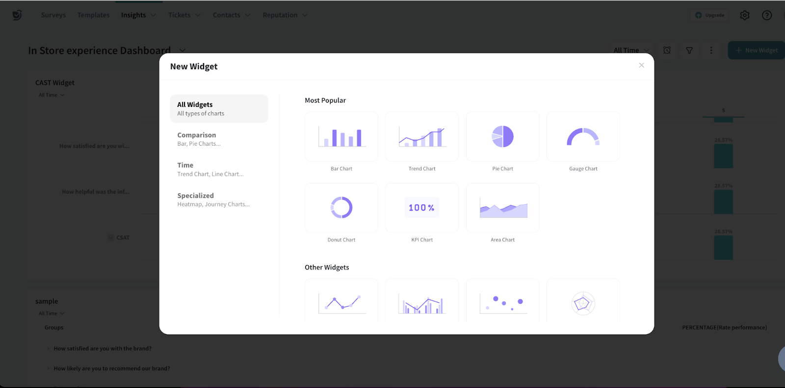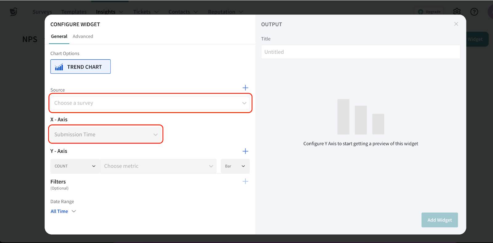 2. Choose the type of widget you want to create. Let us choose a Trend Chart.