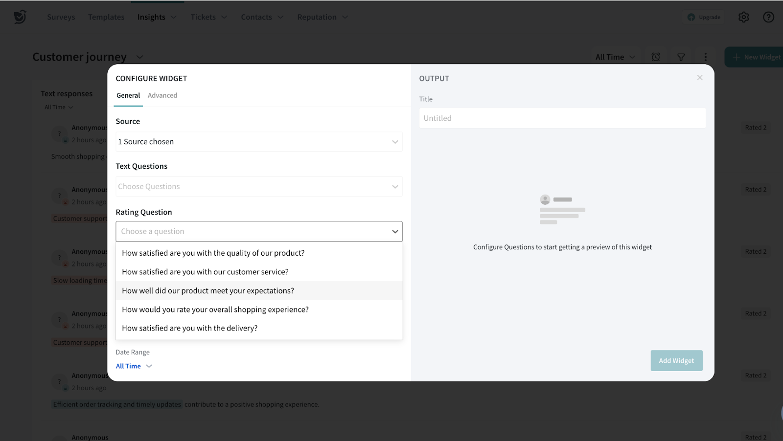 Select the survey (Source) for which you want to create the widget. You can also choose multiple surveys.