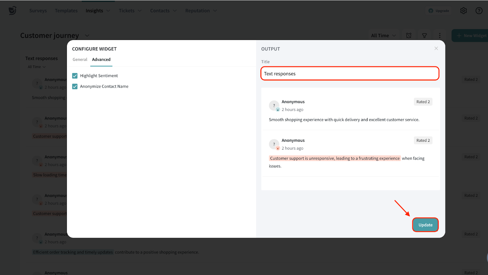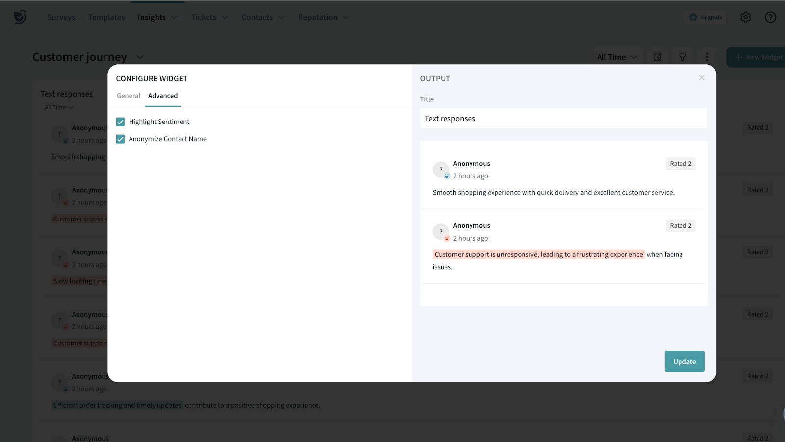 You can also anonymize the respondent's contact name. If this option is enabled, the name will not be displayed on the widget.