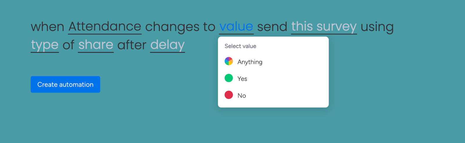If you’re tracking the status of something, and you want to send surveys based on changes in status (eg: event registrants who showed up), you can use this.