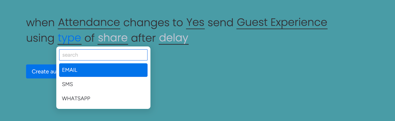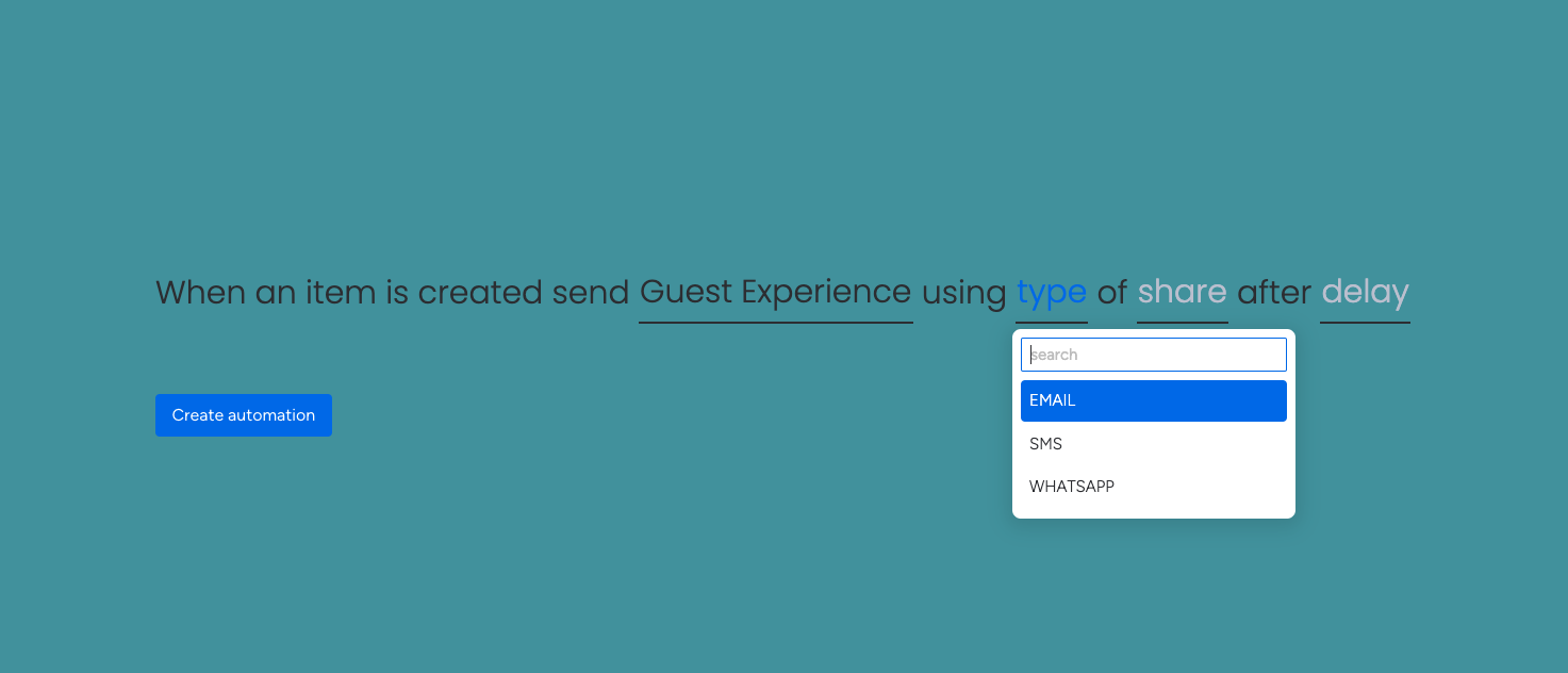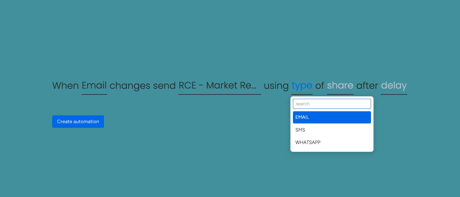 4. The fourth part is the share type. Here you can choose between email, SMS and WhatsApp.