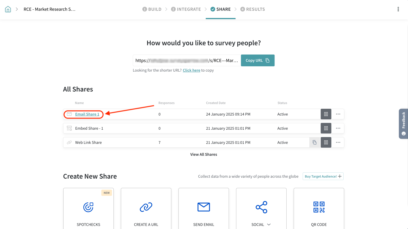 5. The fifth part is the exact share. Ensure that you have created at least 1 of the selected share type in your SurveySparrow account.