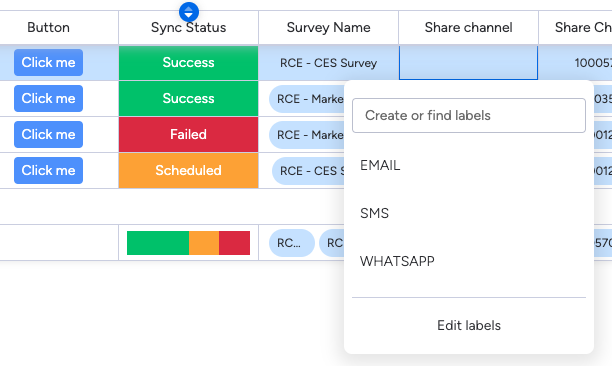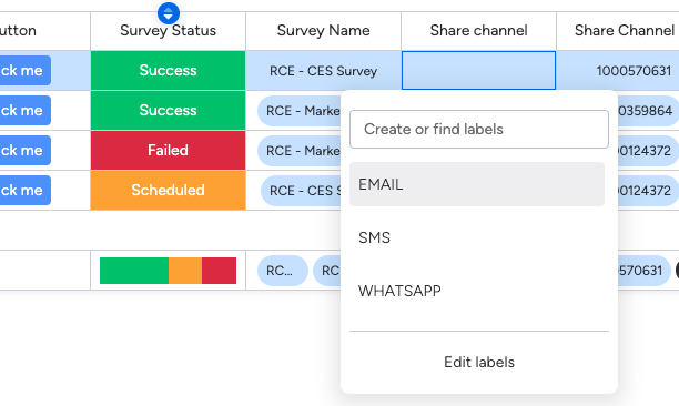 Note: Within a cell, you must only add 1 label. - A dropdown column for share channel with only three labels: EMAIL, SMS, WHATSAPP (please follow the exact capitalization and spelling)
