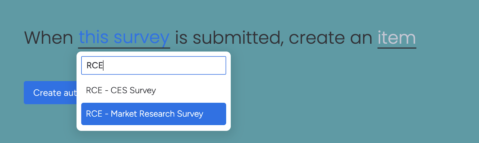 This recipe is similar to the 4th recipe, but you get to decide the survey and share channel when entering an item, instead of a blanket configuration for every new item.