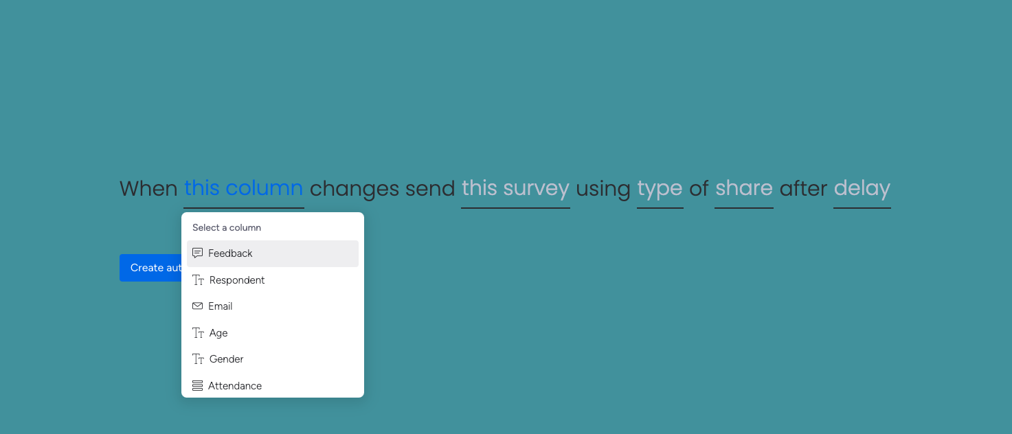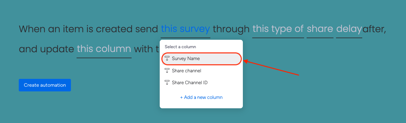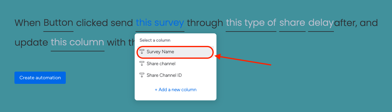 - A dropdown column to enter survey name (enter new names manually as labels)