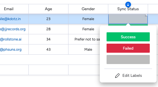 Here you will need a column to capture the sync status of the contact. It should contain two options: Success, Failed (please use the exact spelling).