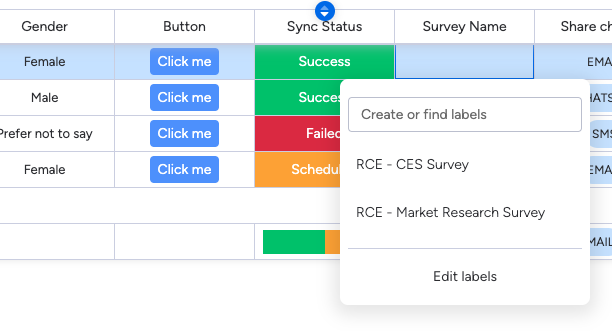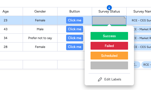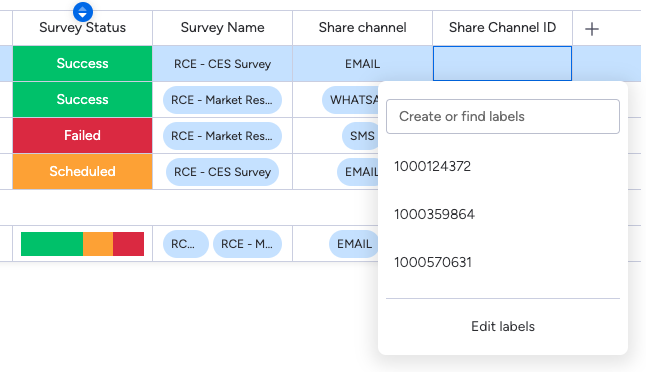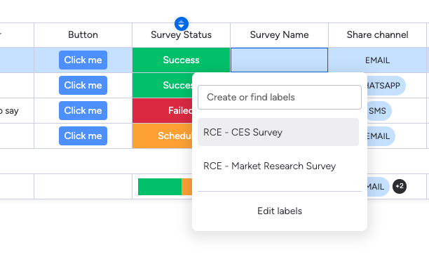 - A dropdown column to enter survey name (enter new survey names manually as labels)