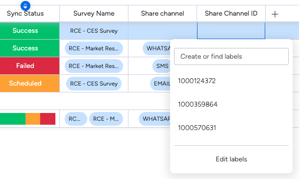 - A dropdown column to enter share channel ID (enter new channel IDs manually as labels)