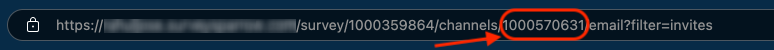 Note: To find the share channel ID, open the survey that you want to send, then the share channel you want to use.