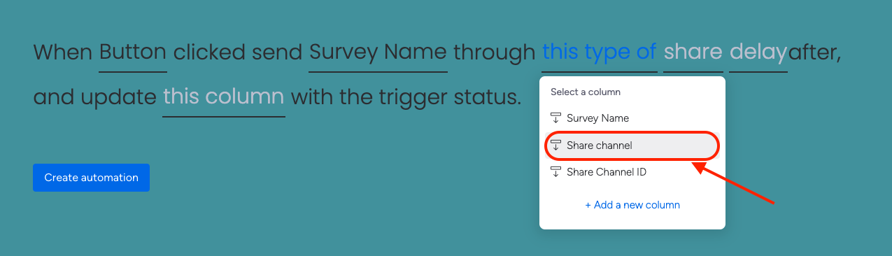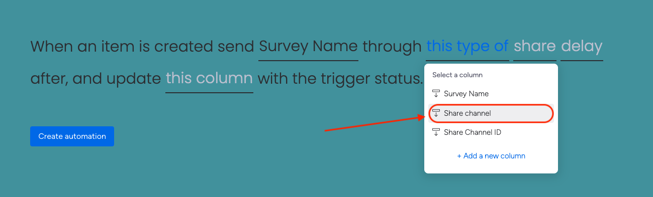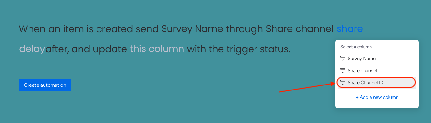 - A dropdown column to enter share channel ID (enter manually as a label)