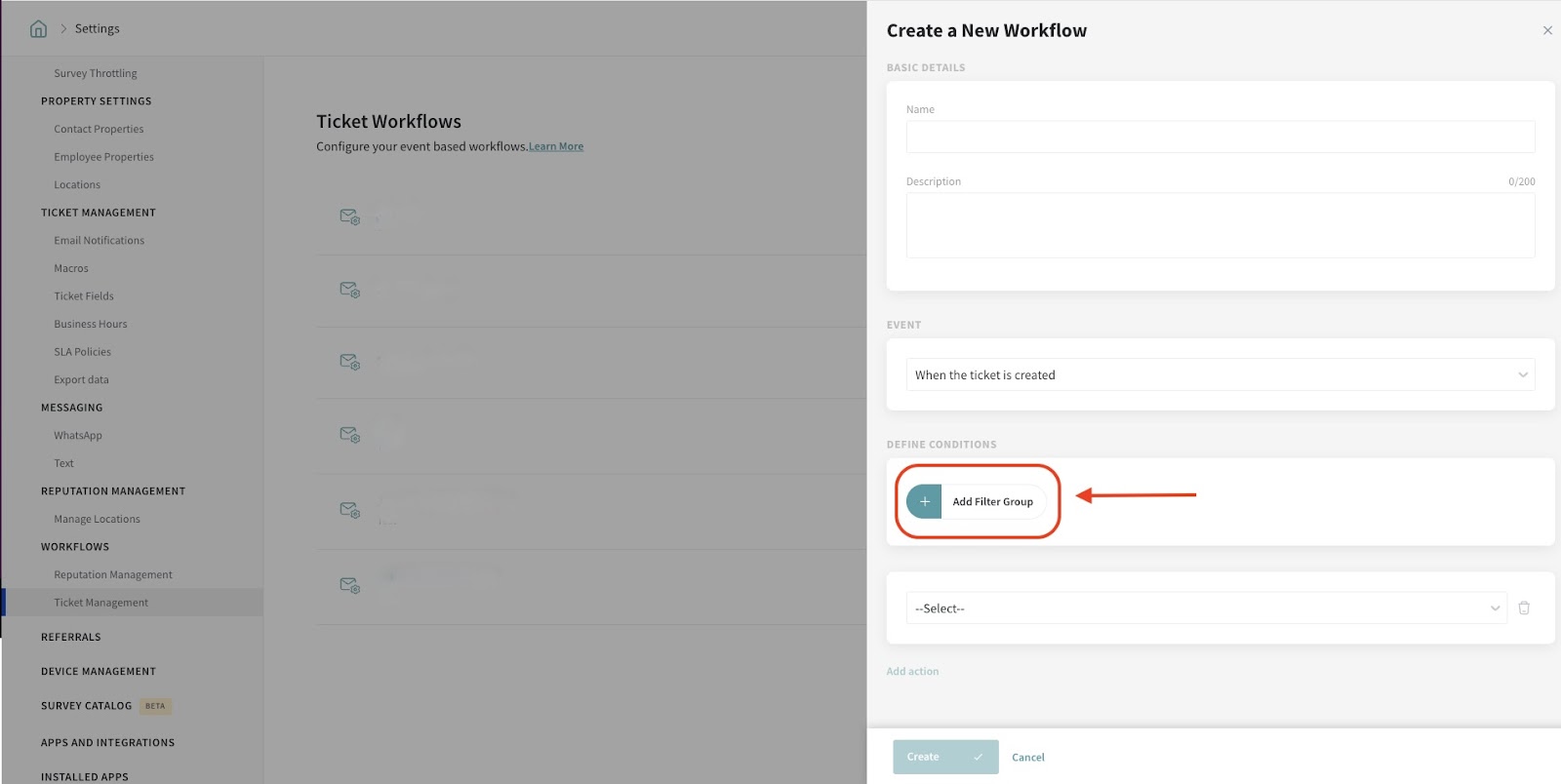 6. Use the same filtering steps explained above to create conditions in workflows. This helps automate ticket assignments, escalations, or follow-ups based on specific criteria like survey scores, review ratings, or contact information, ensuring the right tickets reach the right teams faster.