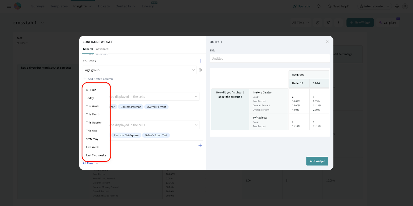 Navigate to the Advanced tab to further customize your Crosstab report with the following options: