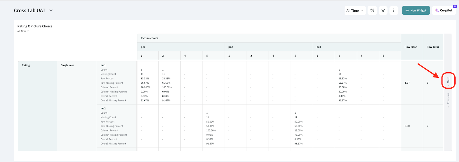- Row Total Percent: Percentage of responses each cell contributes to the total responses in its row.