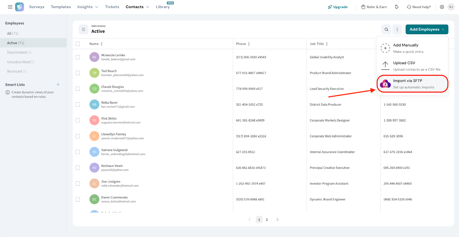 In this article, we’ll guide you through the process of importing your employee contacts from an SFTP server to your SurveySparrow account - either as a one-time action or on a recurring basis.