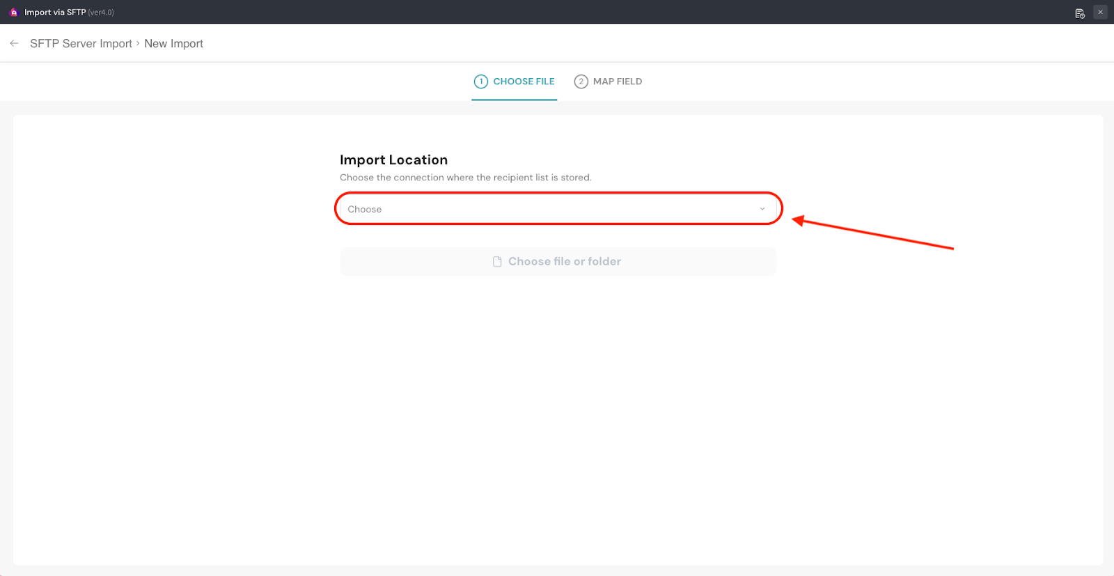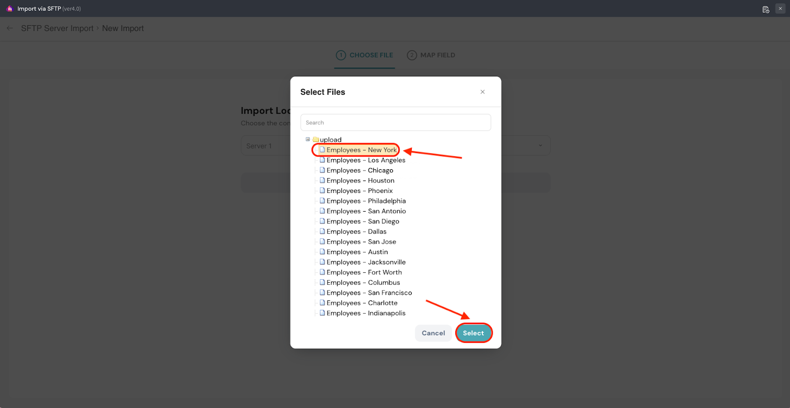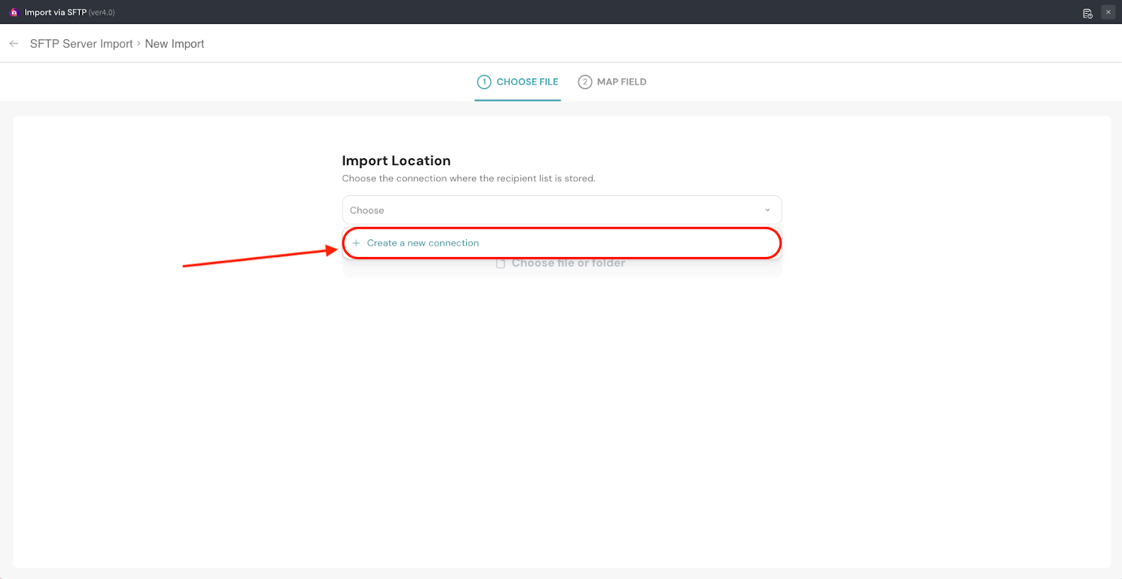 4. To import employee contacts, you will need to connect to an SFTP server. Click on the field titled Choose to select a connection.