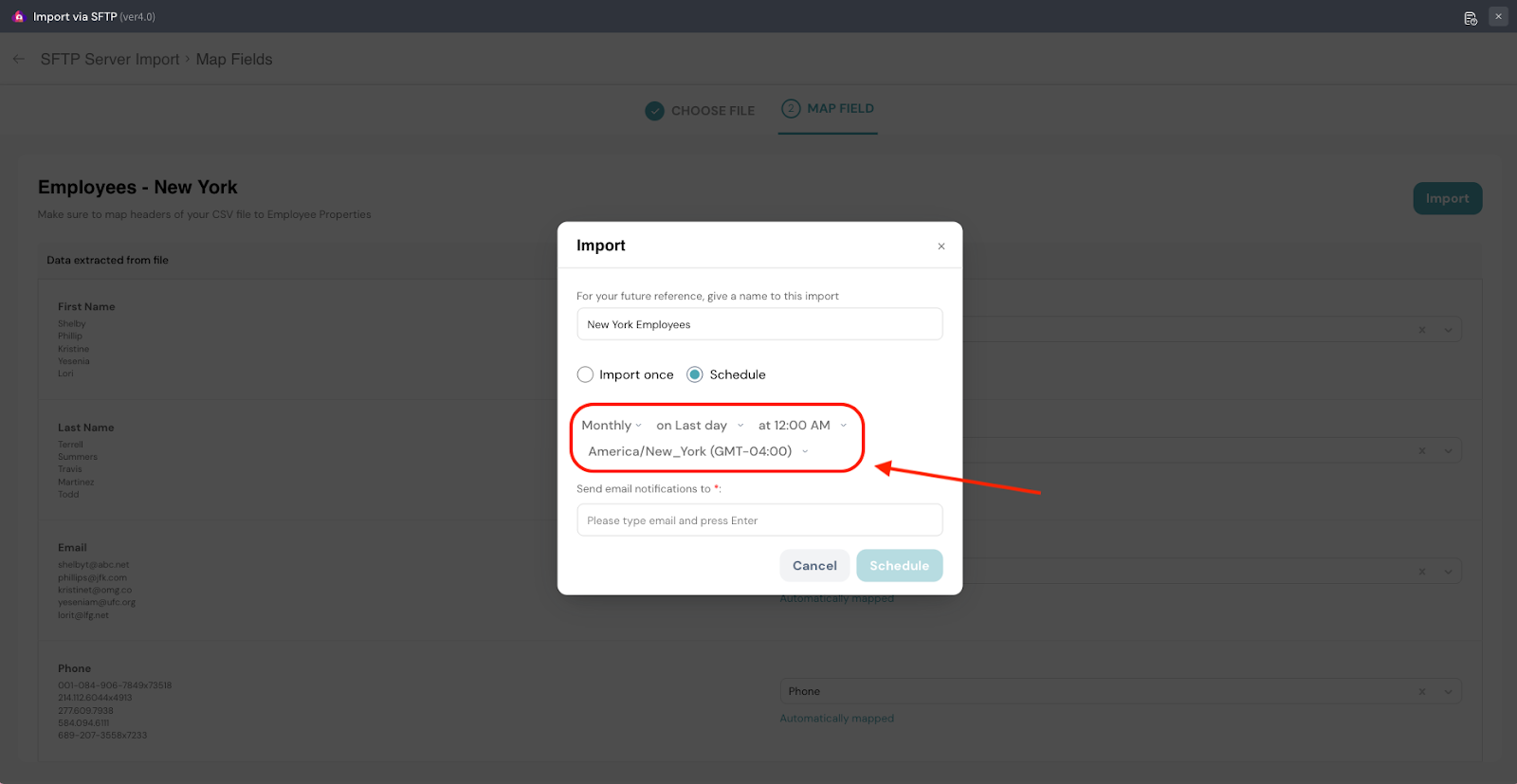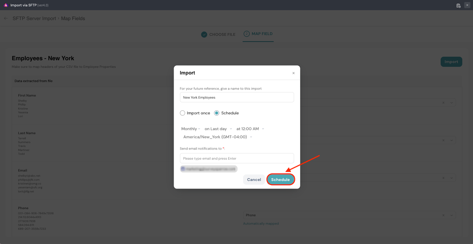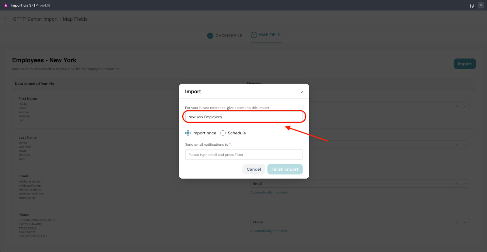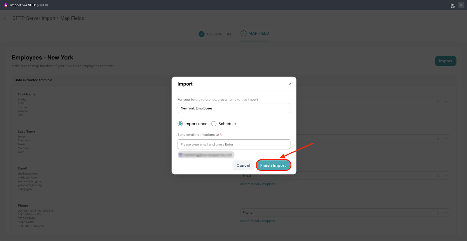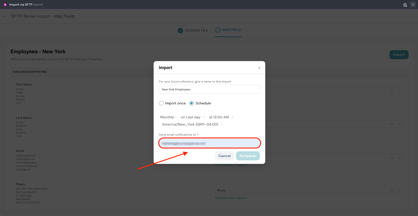 16. Finally, you must add an email address of someone in your organization so that they are notified about the import. Type in the email, then press Enter (or Return) or your keyboard.