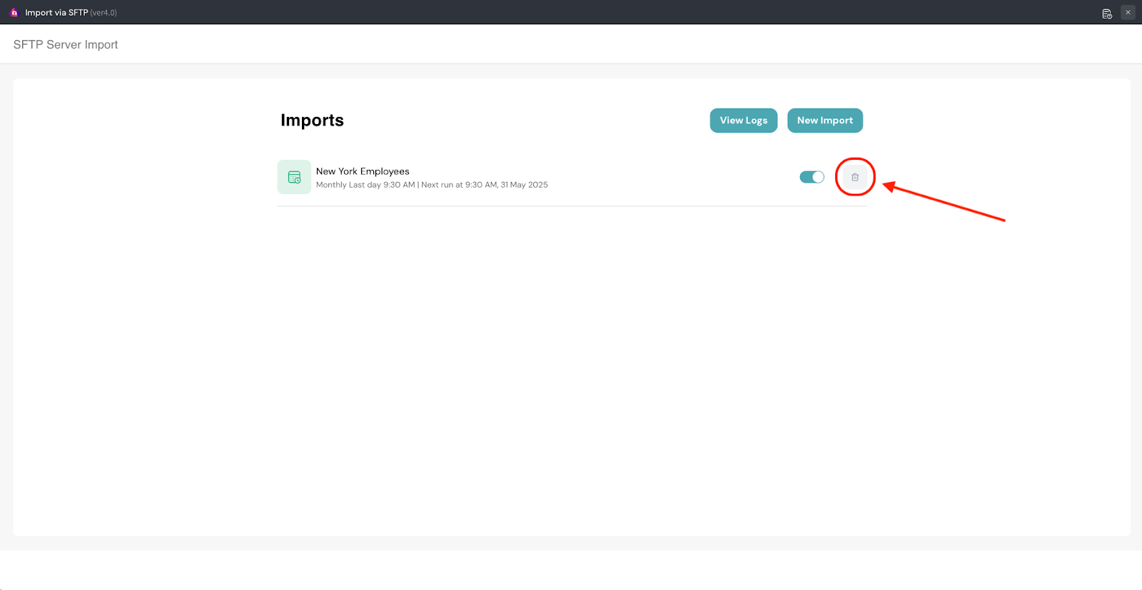 20. To delete an import, hover over it. You will see a grey dustbin icon, which you must click.