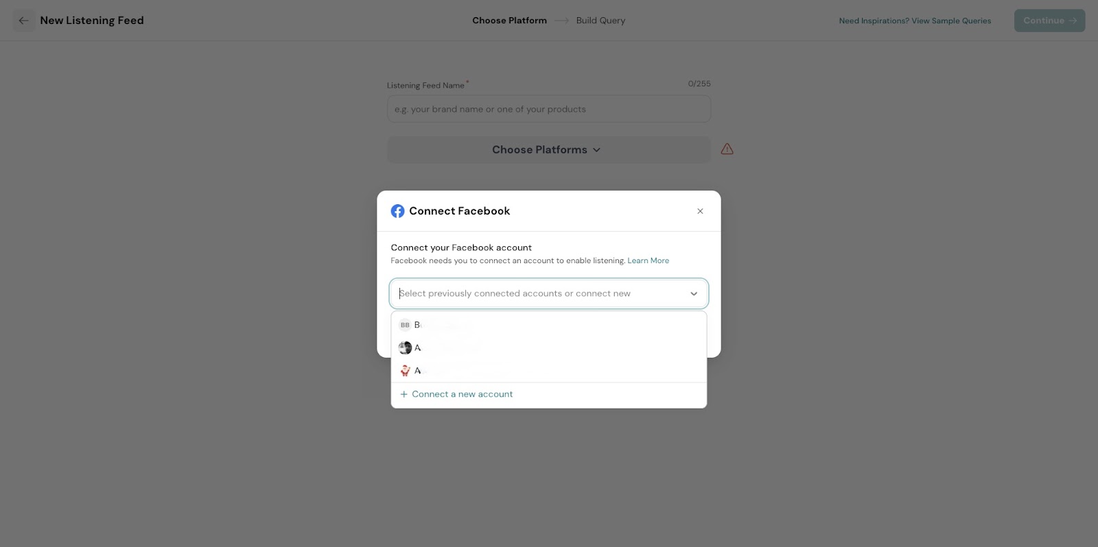- If your Facebook account is already connected, simply select the account you want to use for listening.
