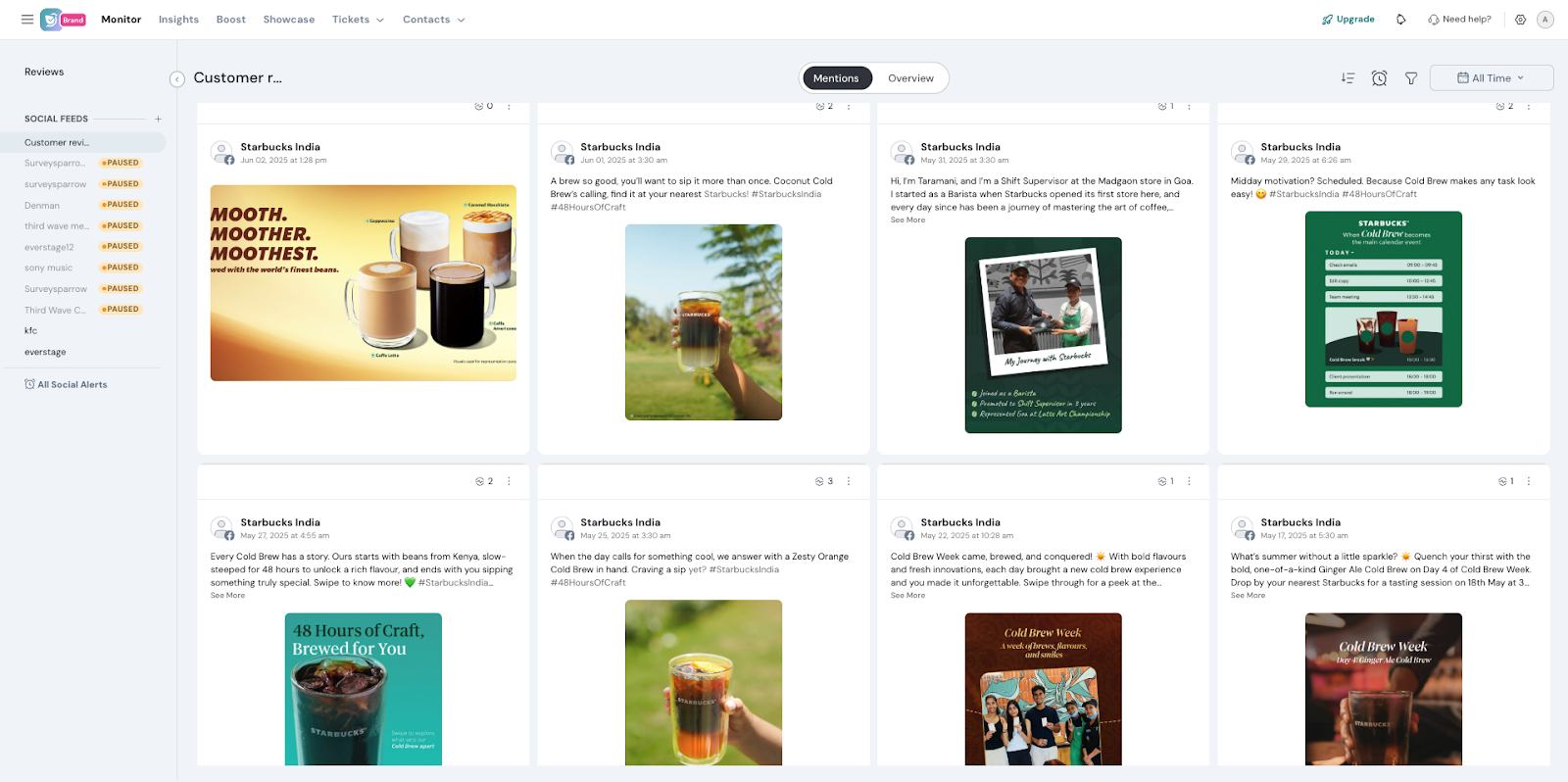 11. This will take you to the Mentions page, where all your created social feeds are displayed.