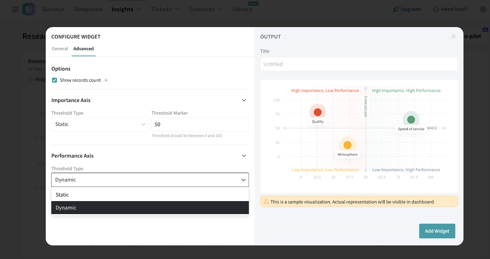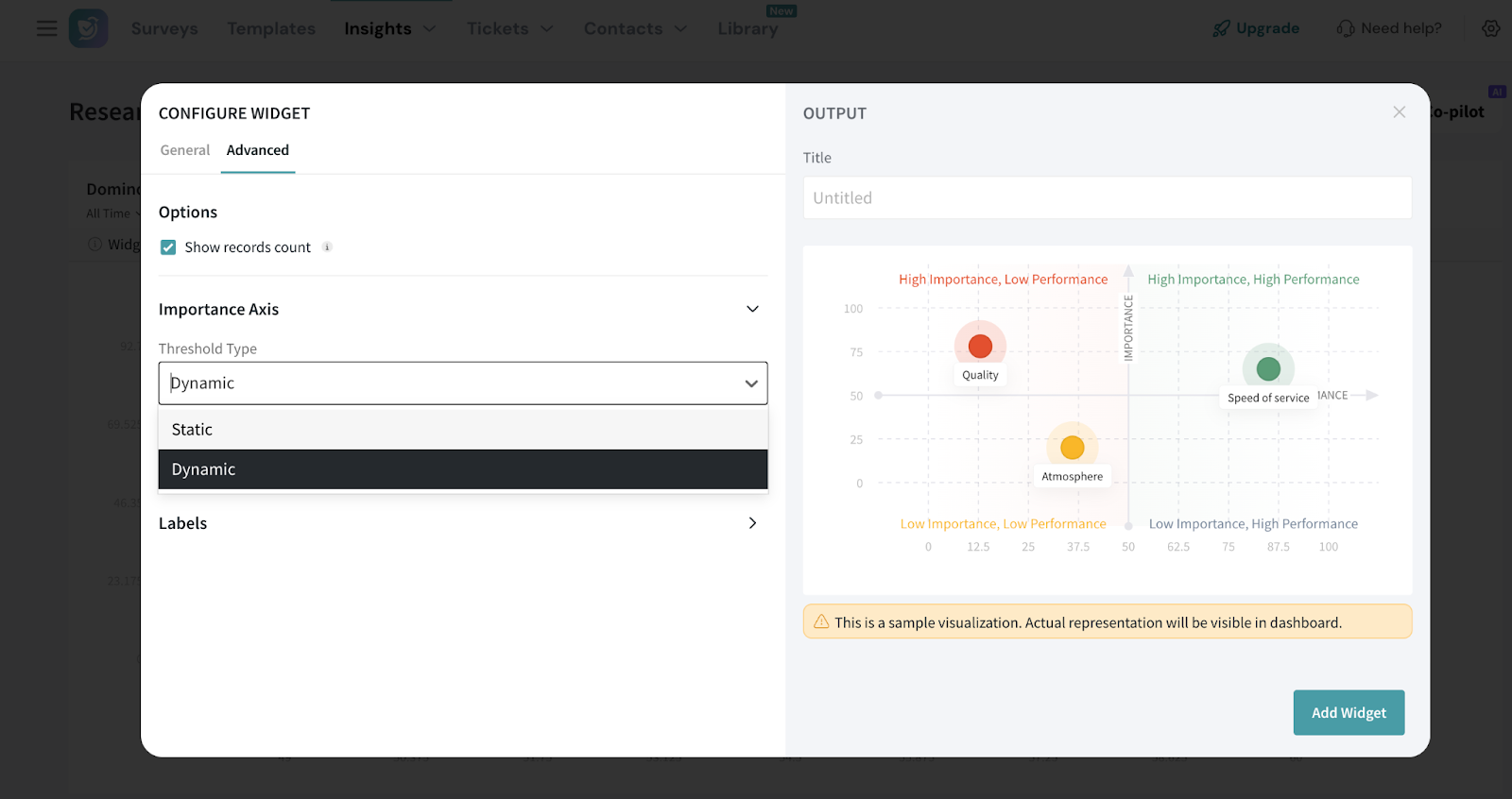 Note: By default, the importance axis is set to static, but you can switch to dynamic and define your own threshold.