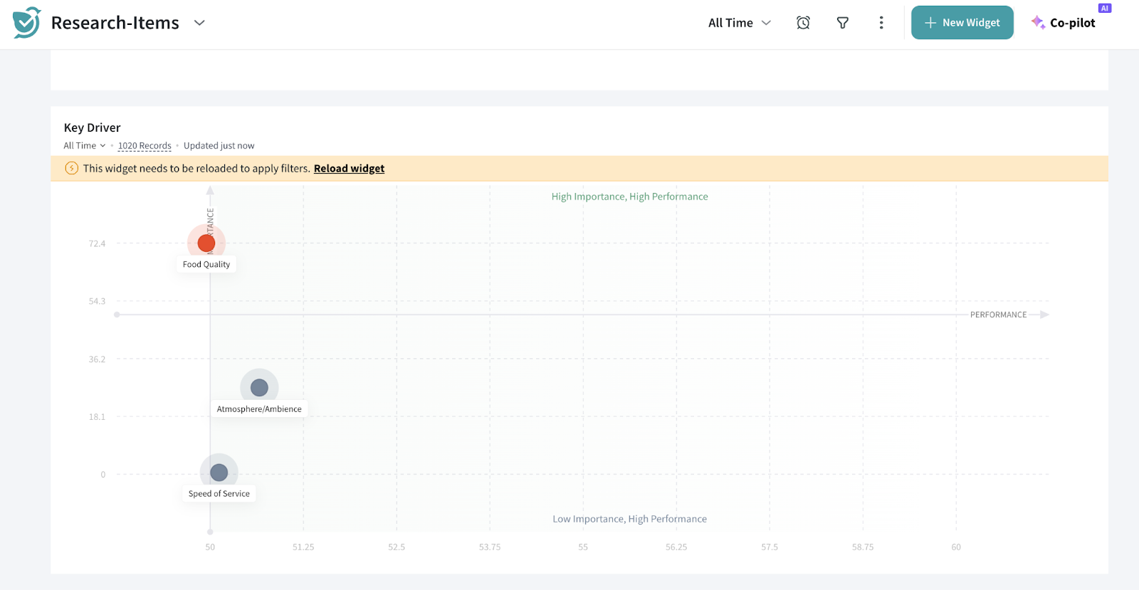 Note: The Key Driver Widget does not update in real time. If you apply filters at the dashboard level, you will need to manually refresh the widget for the changes to reflect.