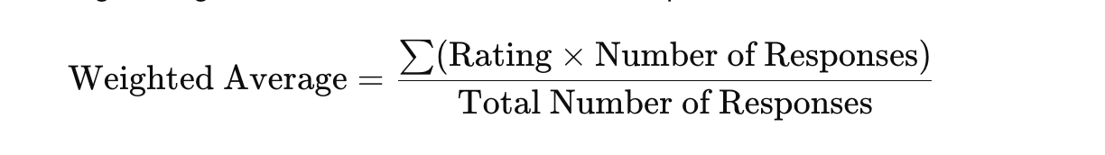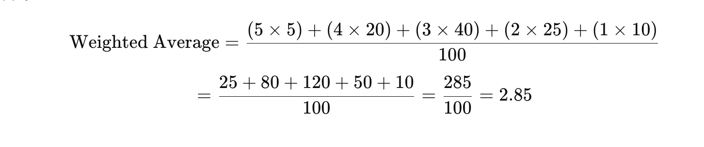 Since the rating scale ranges from 1 to 5, convert the weighted average to a percentage using the formula: