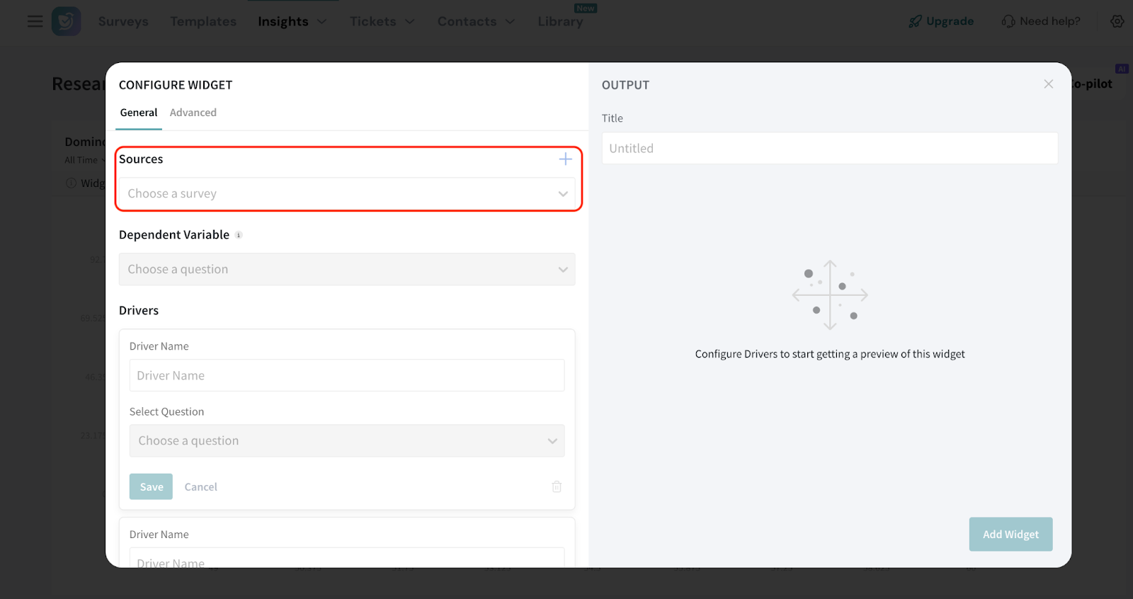 - Select the survey (Source) for which you want to create the widget. You can also choose multiple surveys.