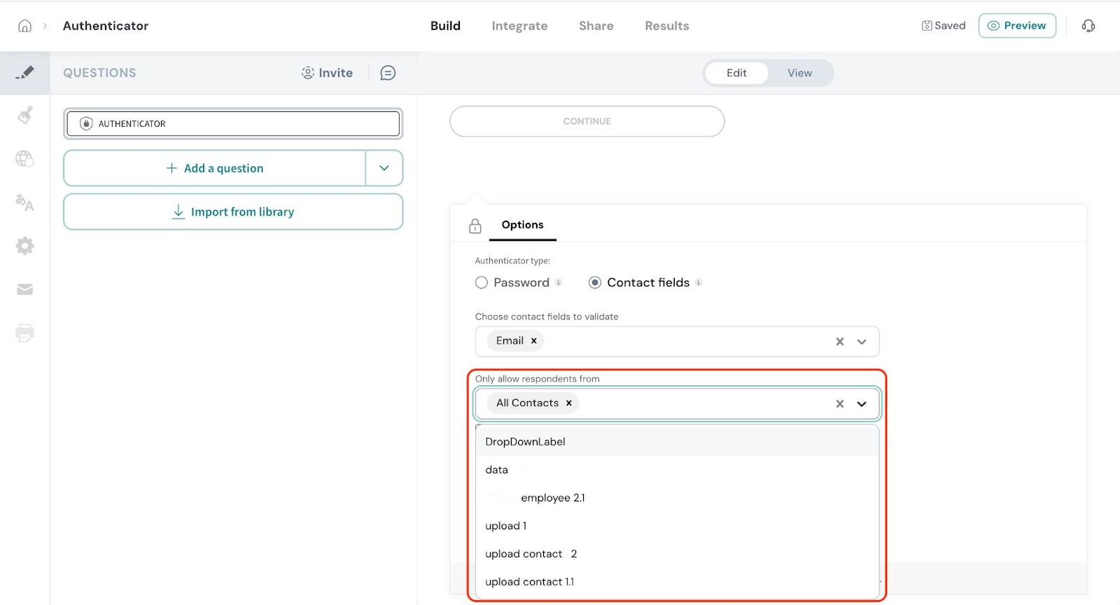 - Contact Fields – Respondents must enter specific contact details (like a unique ID or mail) that match the records in your contact list to gain access to the survey.