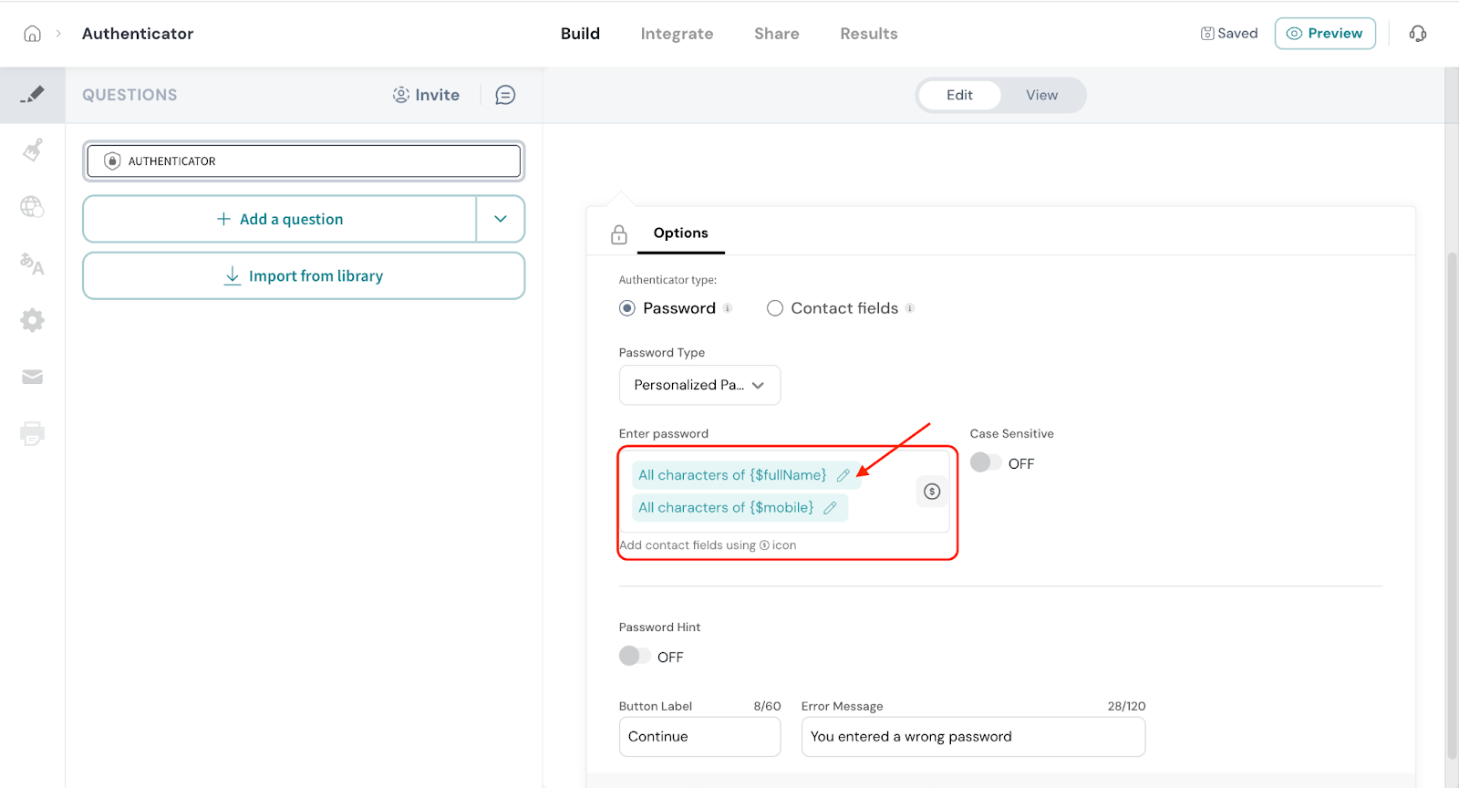 Personalized Password – This allows you to create dynamic passwords using contact variables. Use the $ symbol to insert variables like name, date of birth, or phone number.