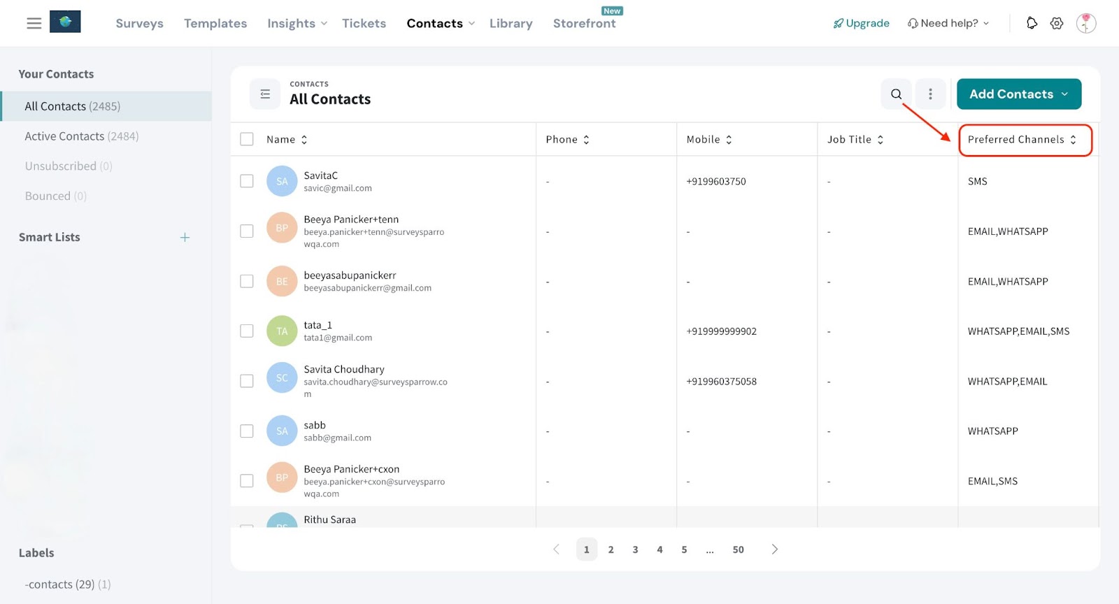 Using Contact Preferred mode in SmartReach, surveys are sent through the channel each customer prefers like Email for detailed messages, SMS for quick replies, or WhatsApp for regular app users.