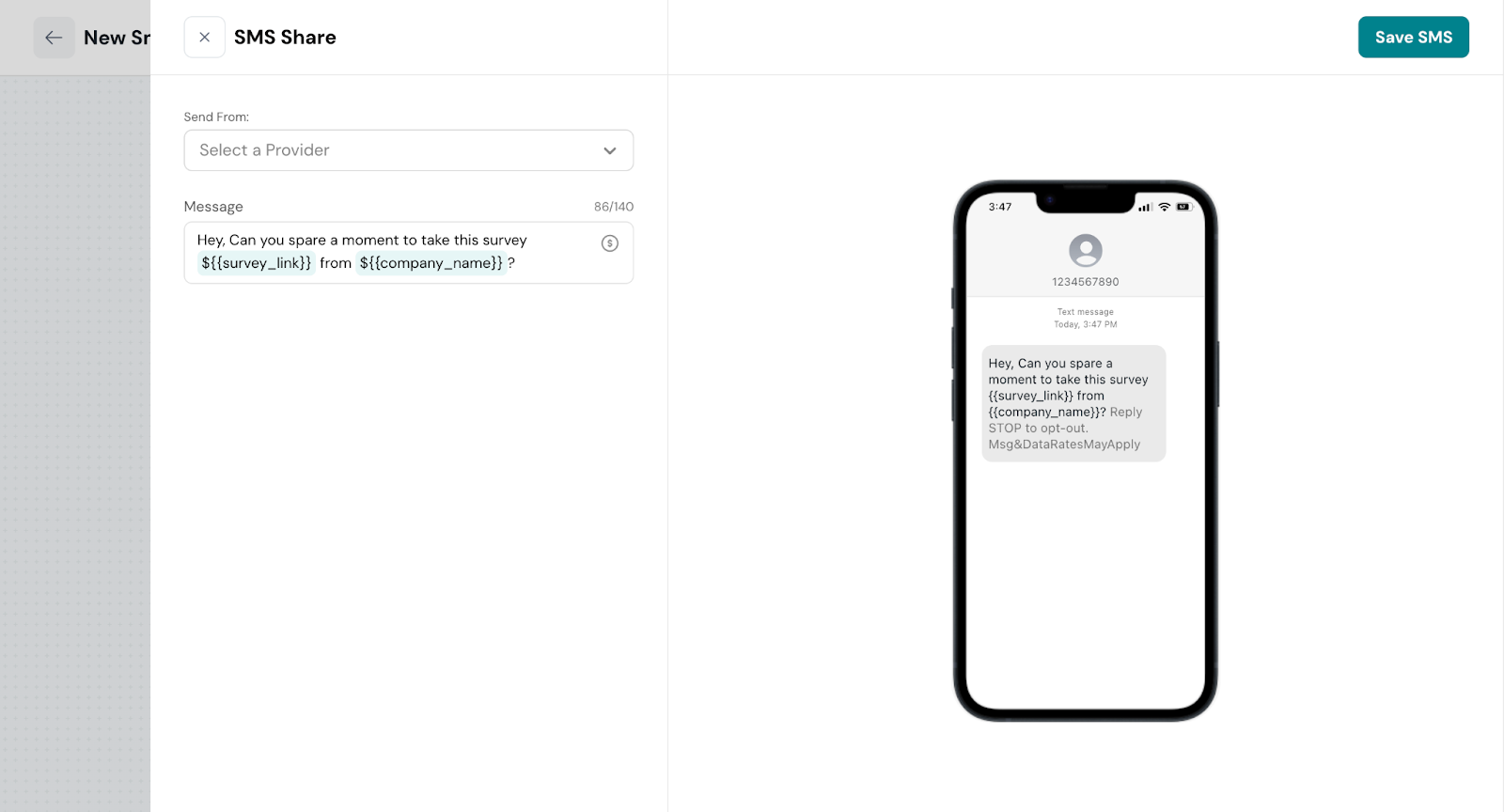 3. You can choose SMS as a channel, but you'll need to select a provider first. After selecting the provider, you can edit the message and use variables to personalize it. Once you're done, click Save SMS to apply the changes.