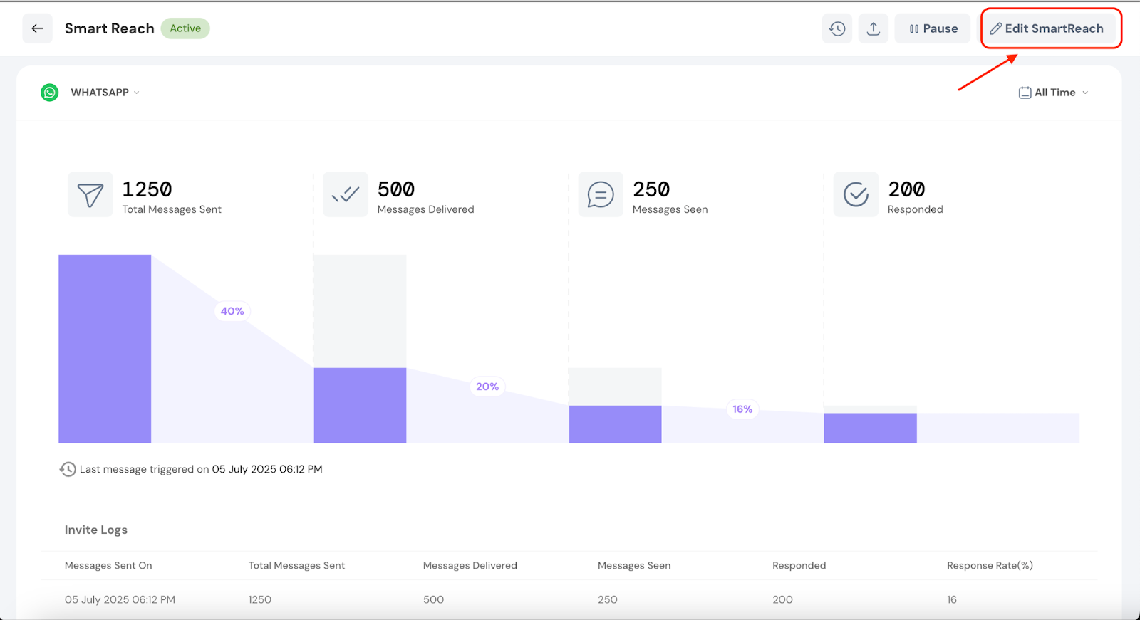 You can also edit the SmartReach campaign to make changes to the selected channels, update sequences, or adjust other configurations as needed.