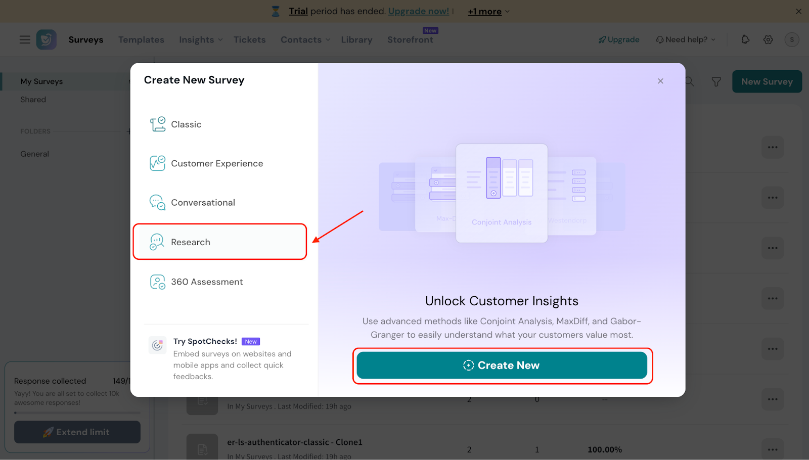 - Navigate to the Research section and select “Create New.”
