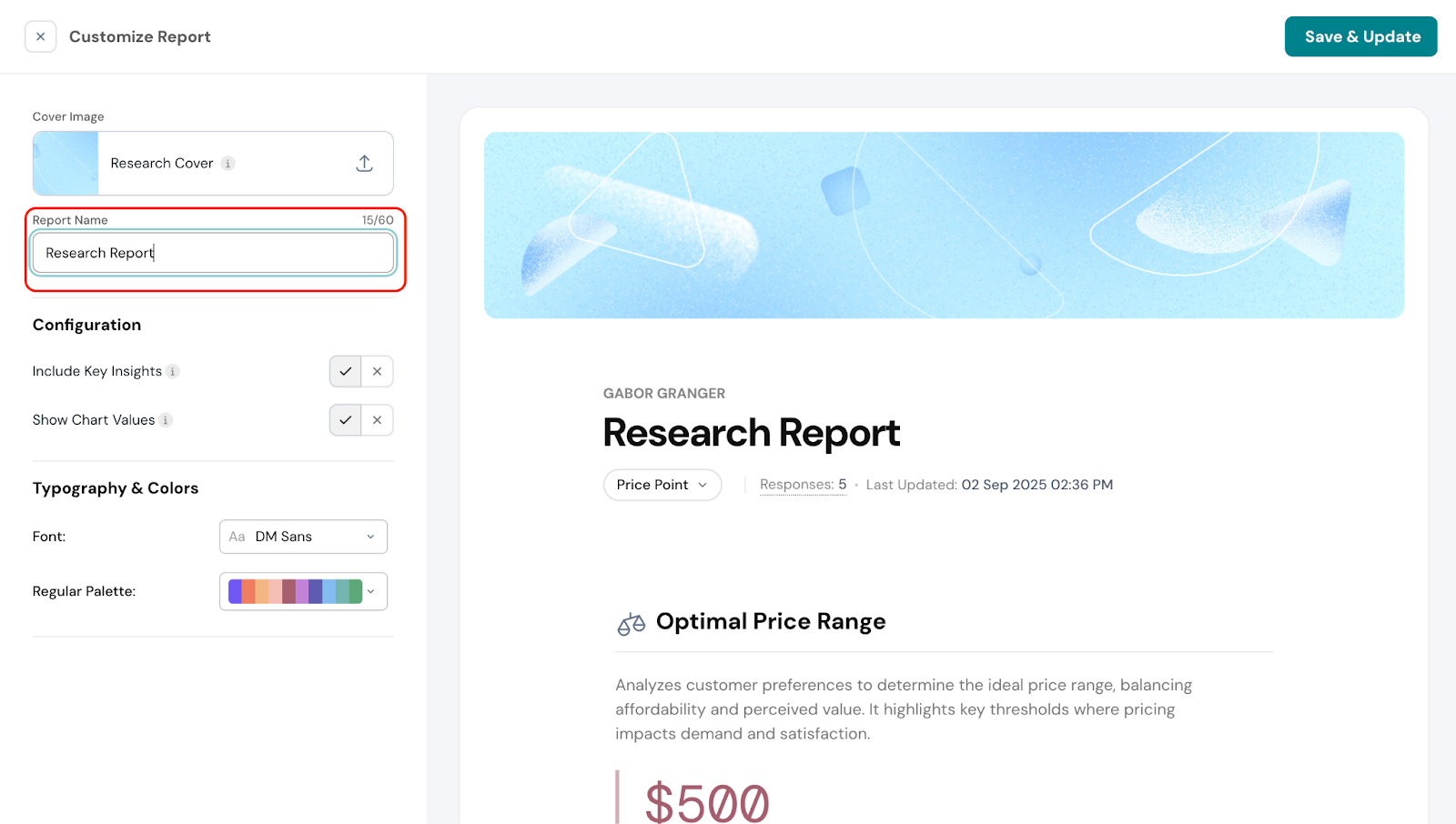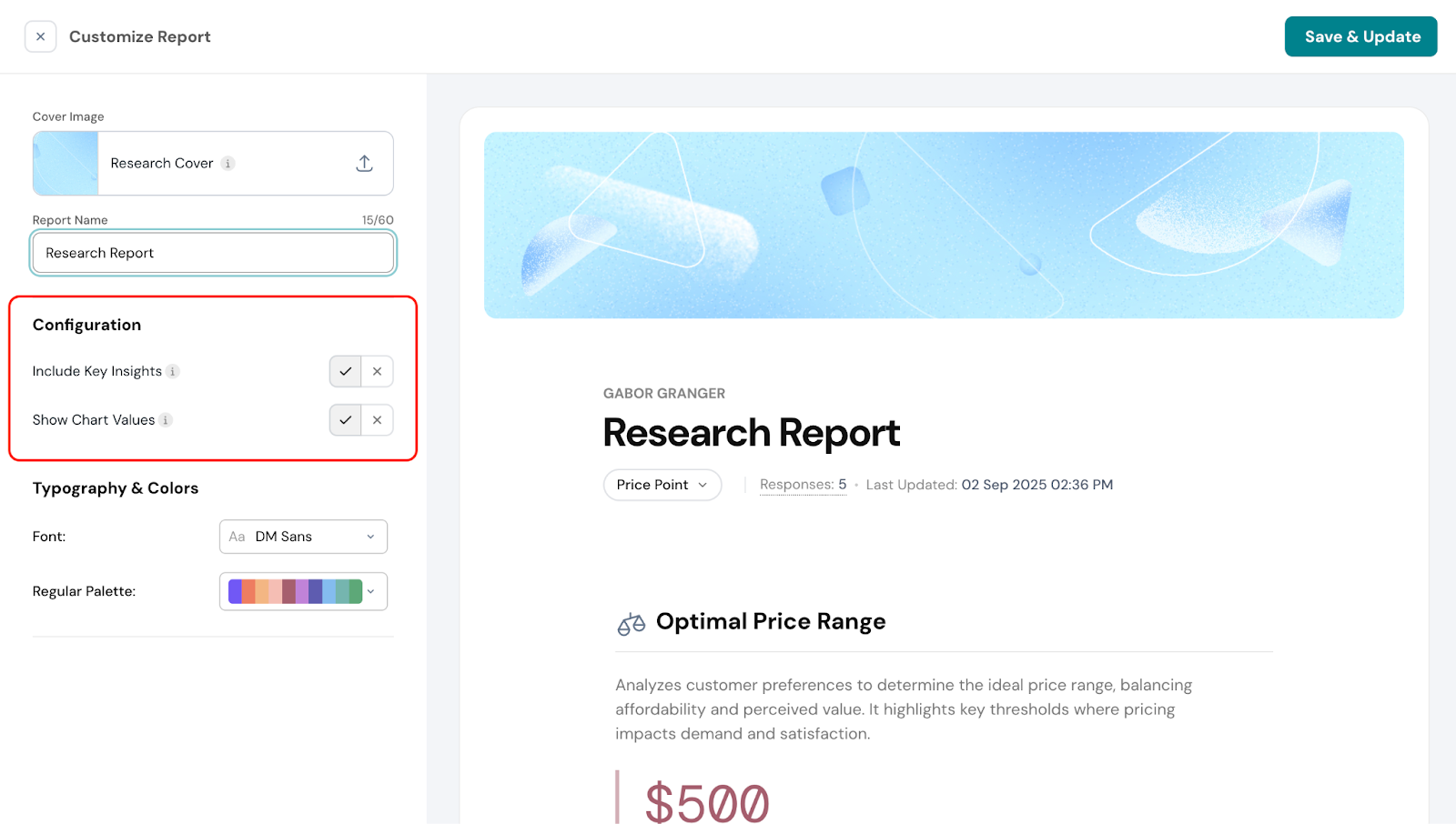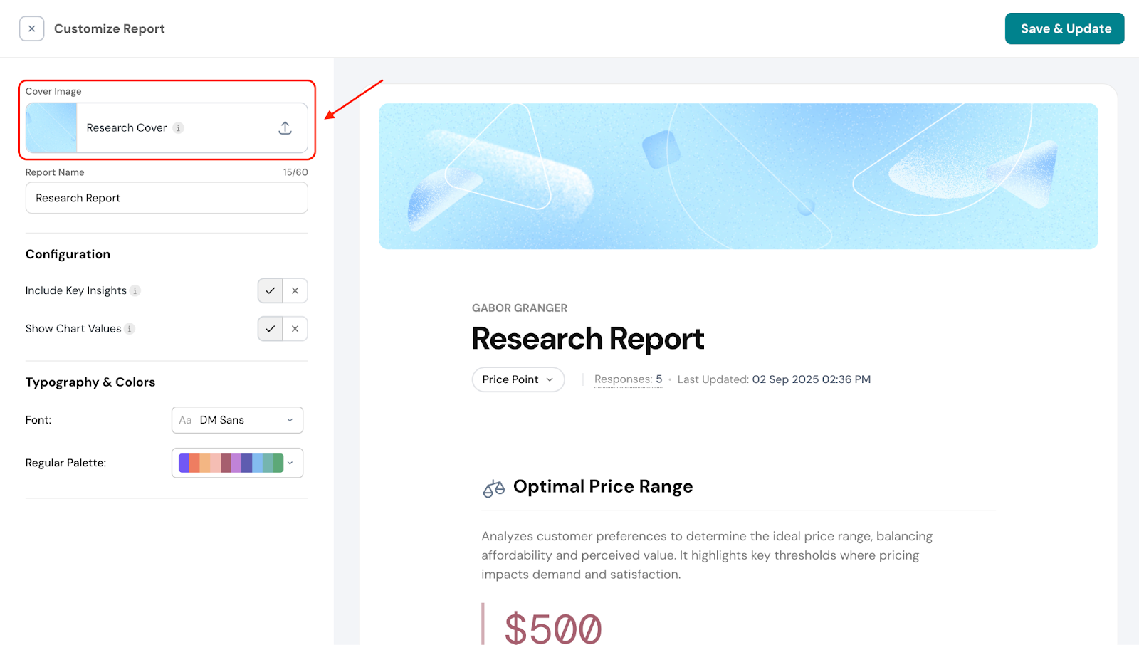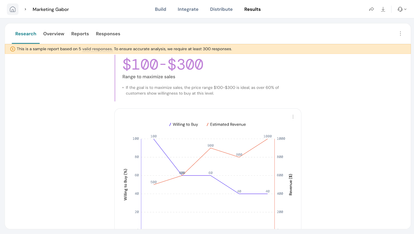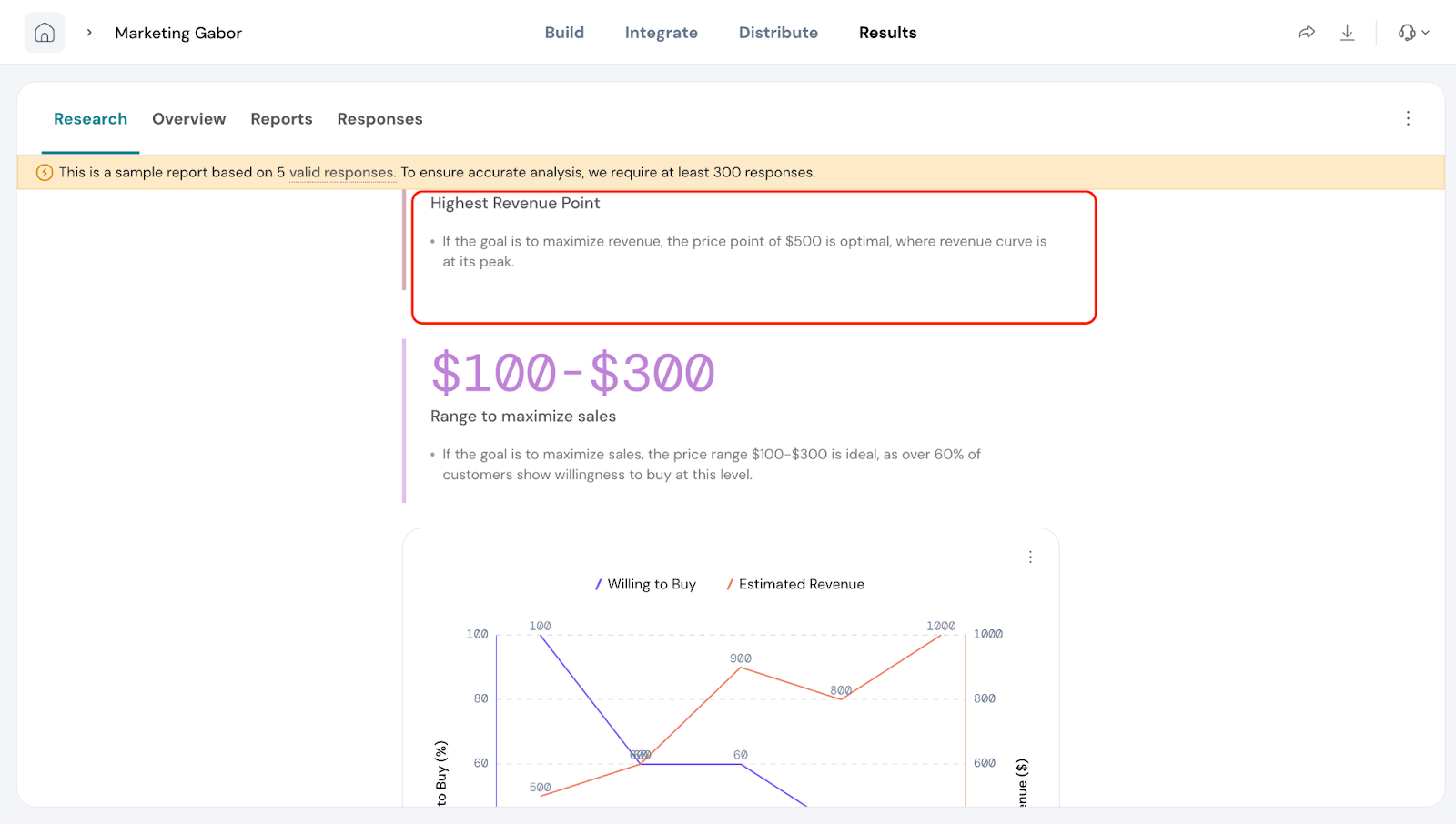 Based on the prices selected and preferred by customers, you’ll see a recommended price range to maximize sales.