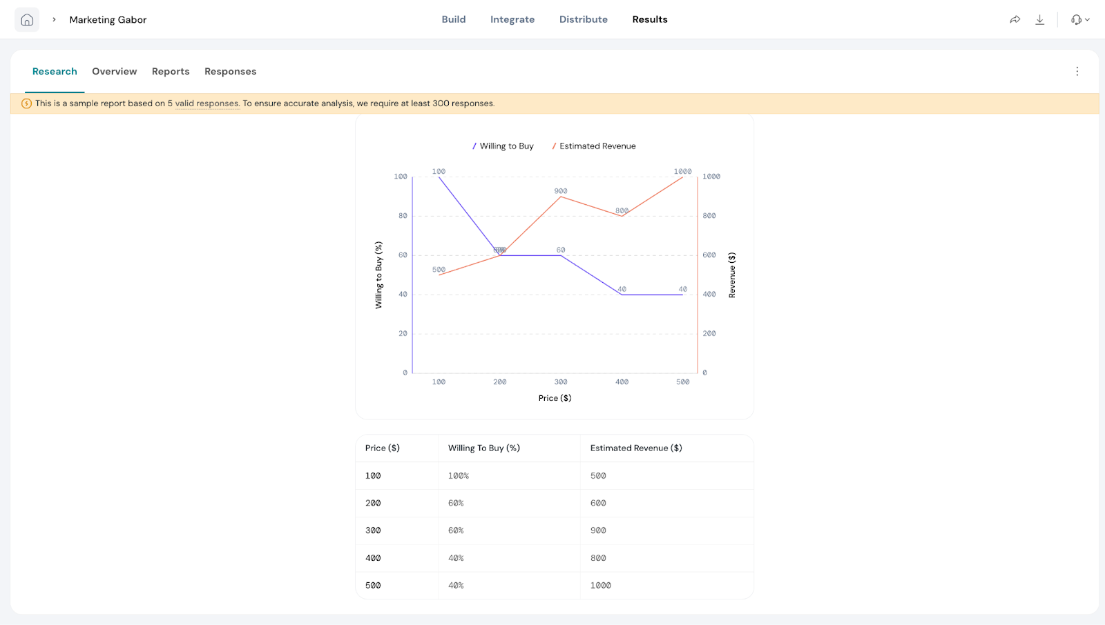 In this section, you can view how individual respondents answered for each price point. This allows you to see detailed responses and understand preferences at a granular level.