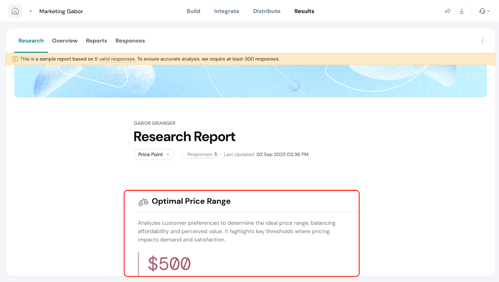 - You will see four research methods. Select Gabor-Granger.