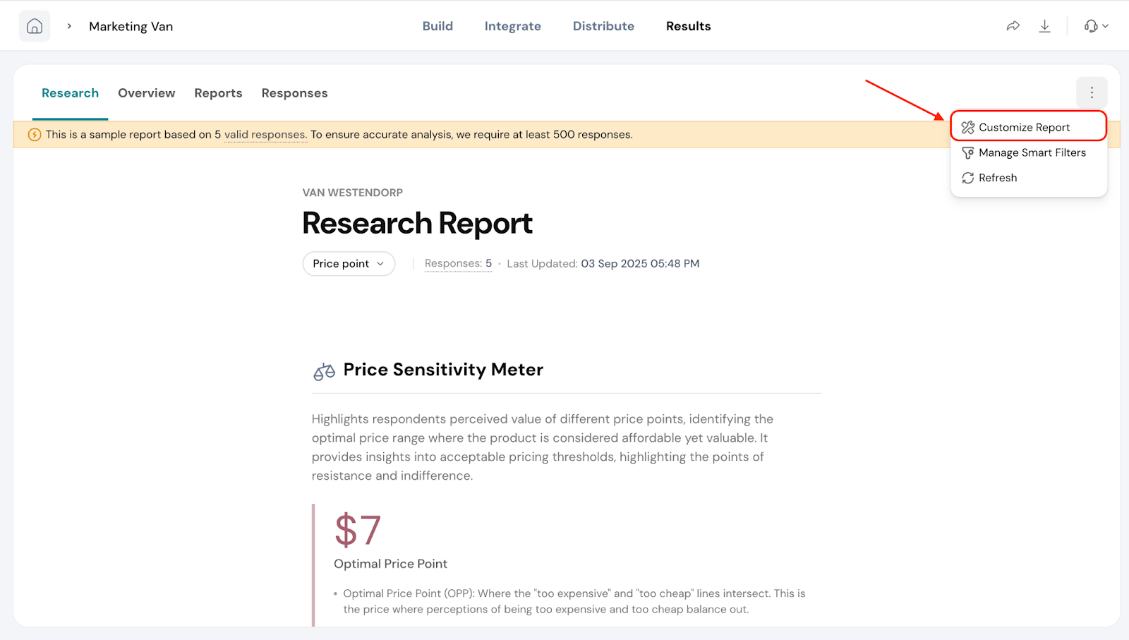 Example: In our report, the Optimal Price Point is $7. This is the price that most customers see as fair and attractive, making it an ideal choice for launching the product.