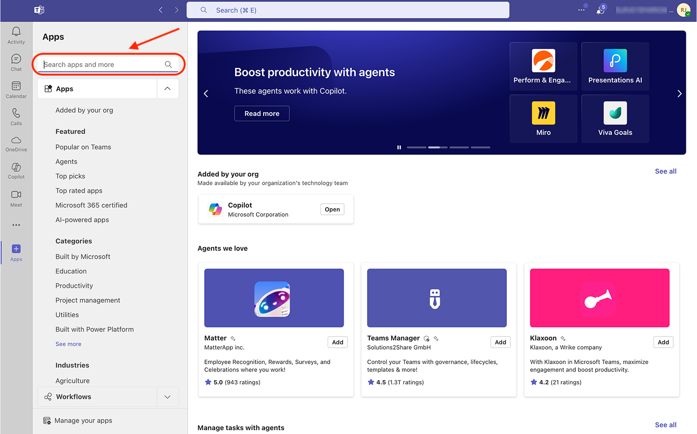 1. Inside your Microsoft Teams workspace, click Apps from the left panel.