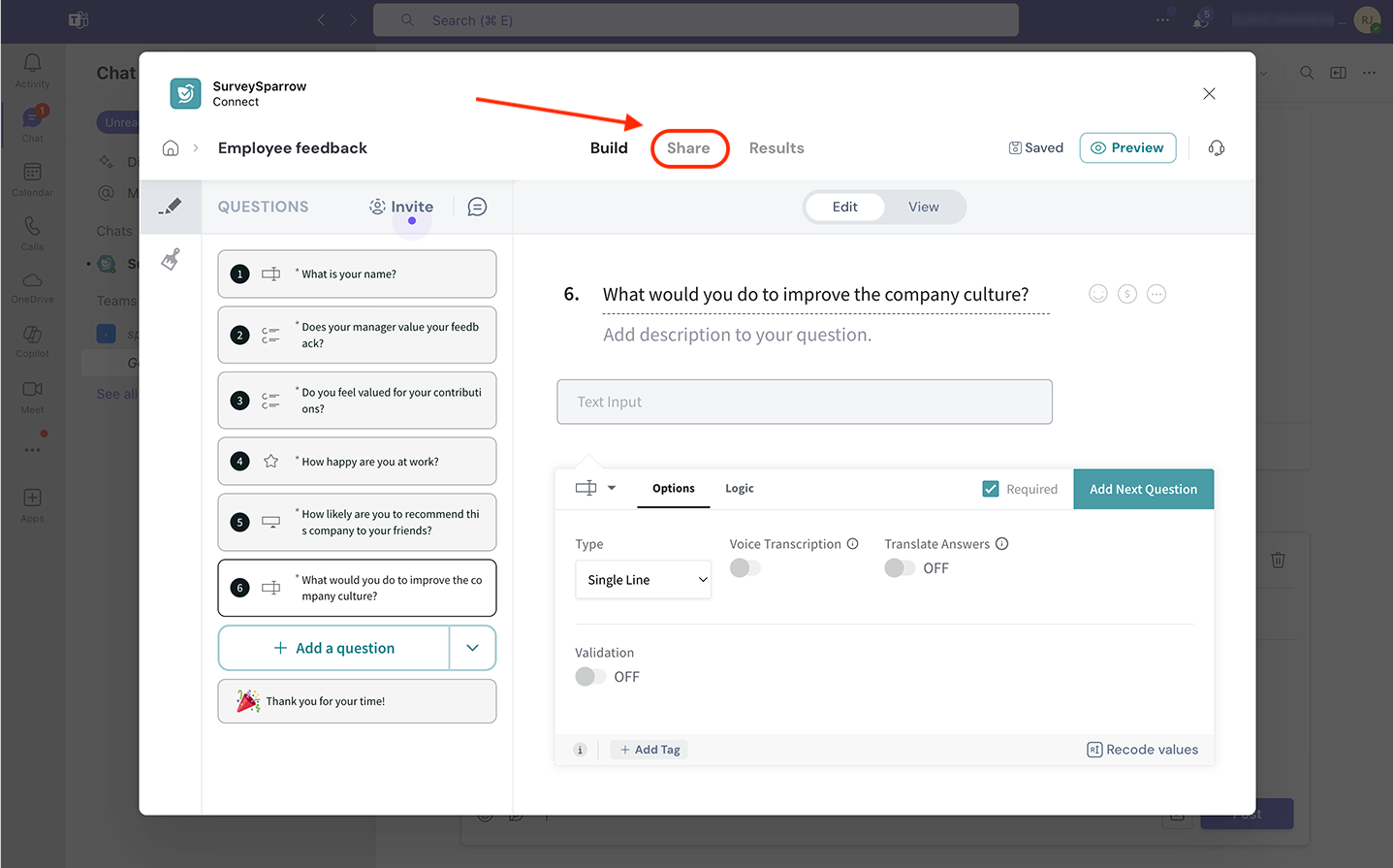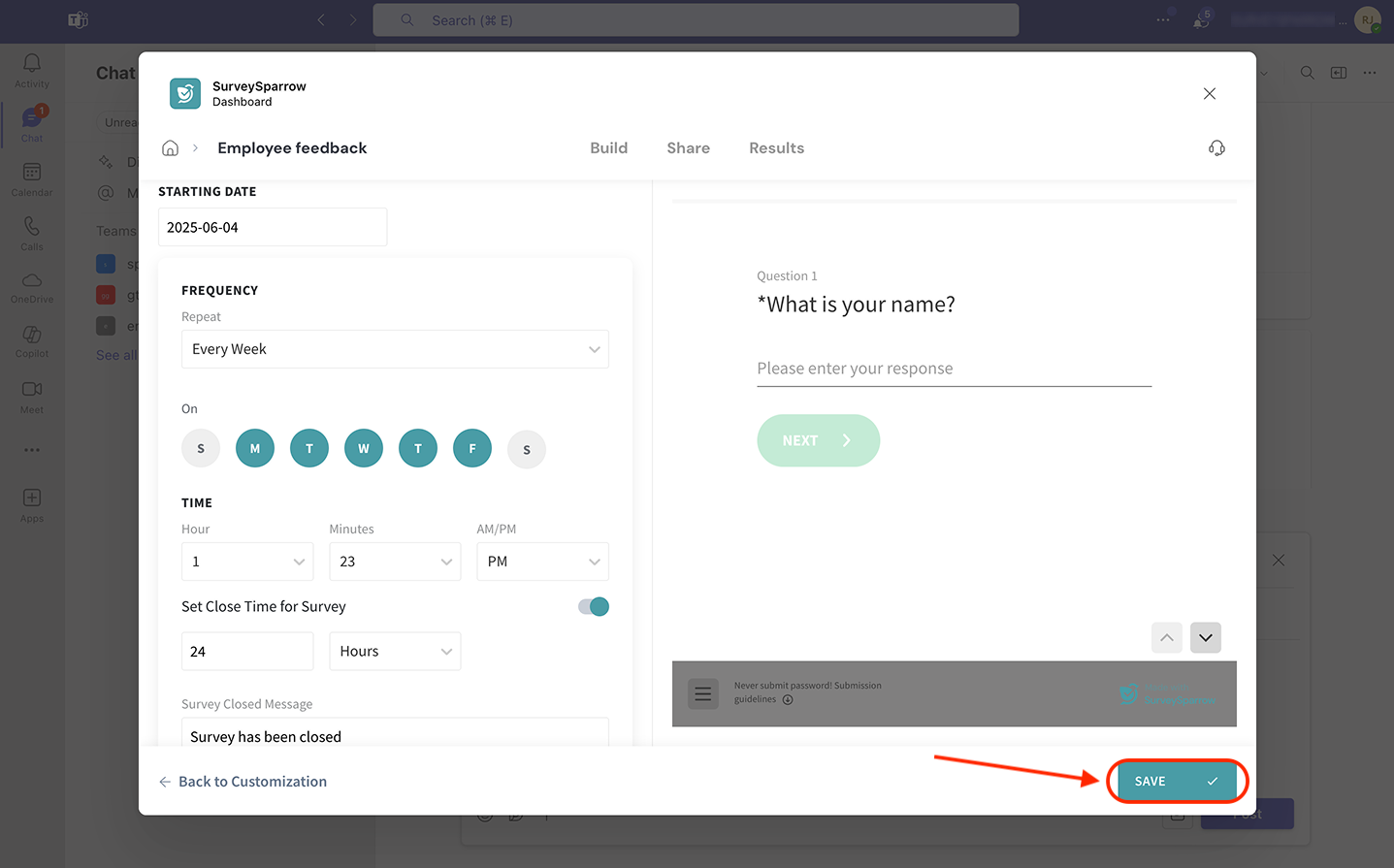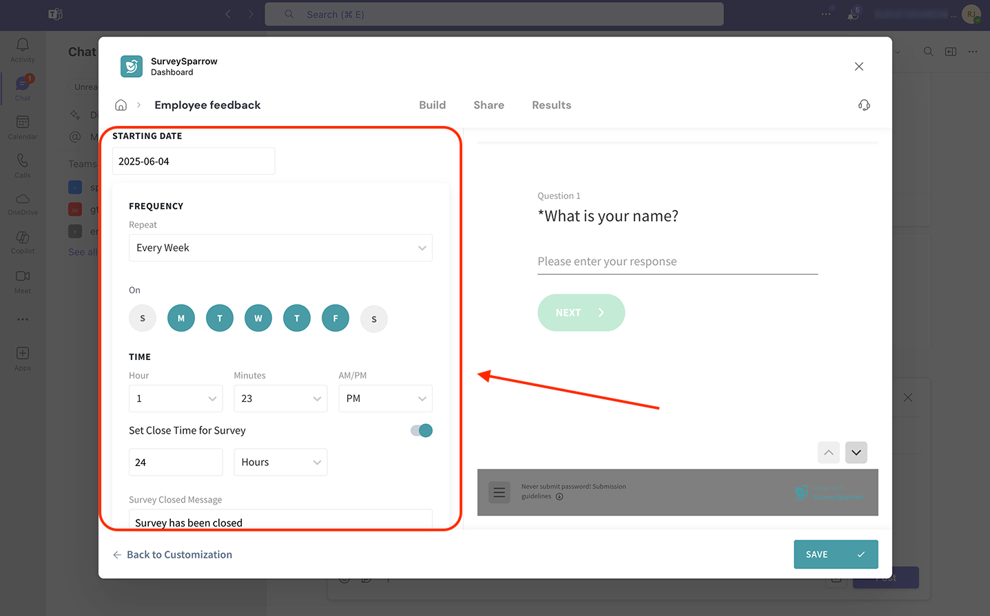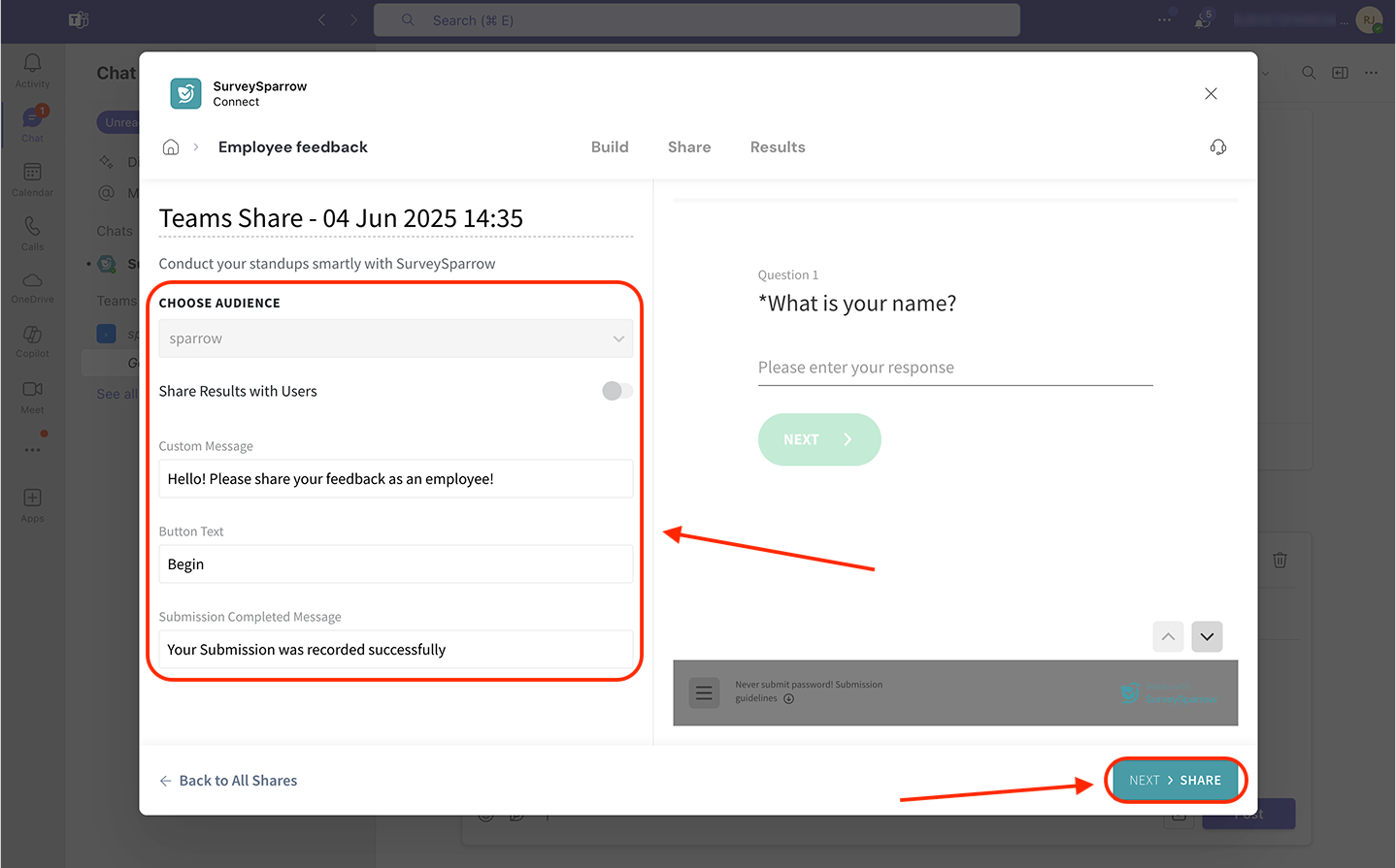 - Sharing surveys inside Microsoft Teams