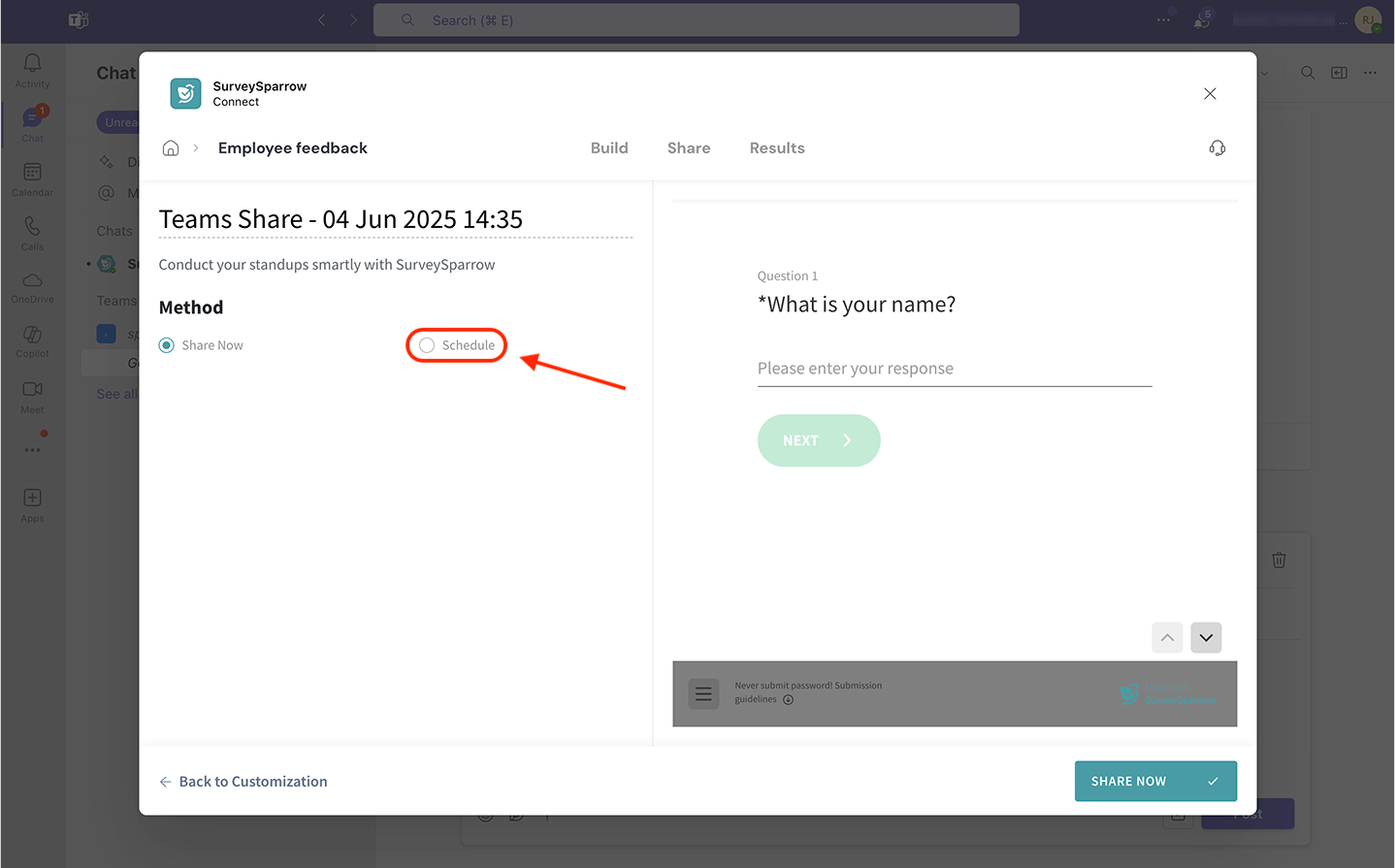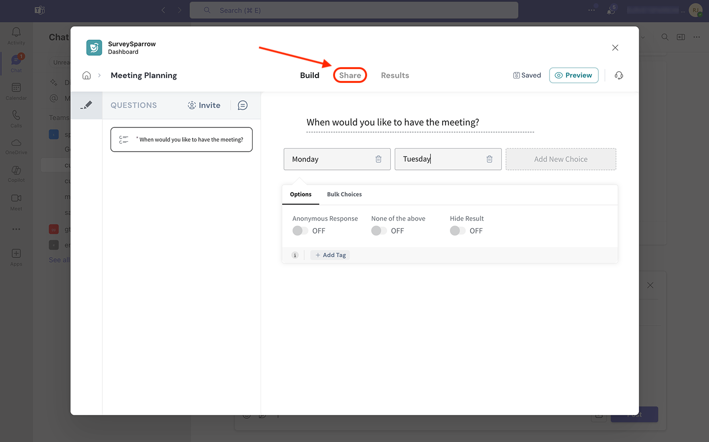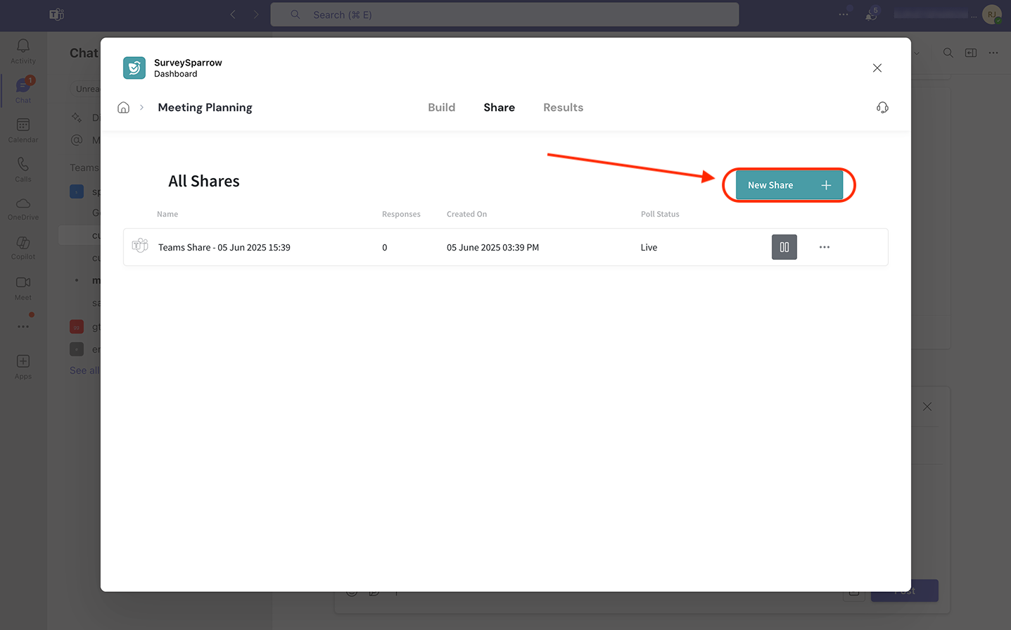 Sharing surveys inside Microsoft Teams