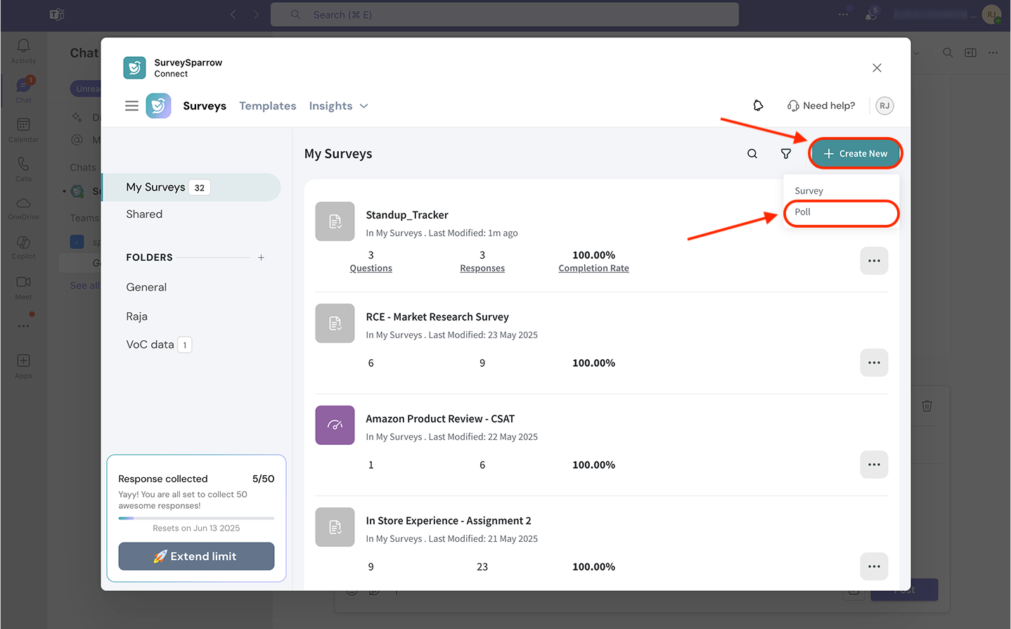 - Viewing survey/poll responses inside Microsoft Teams