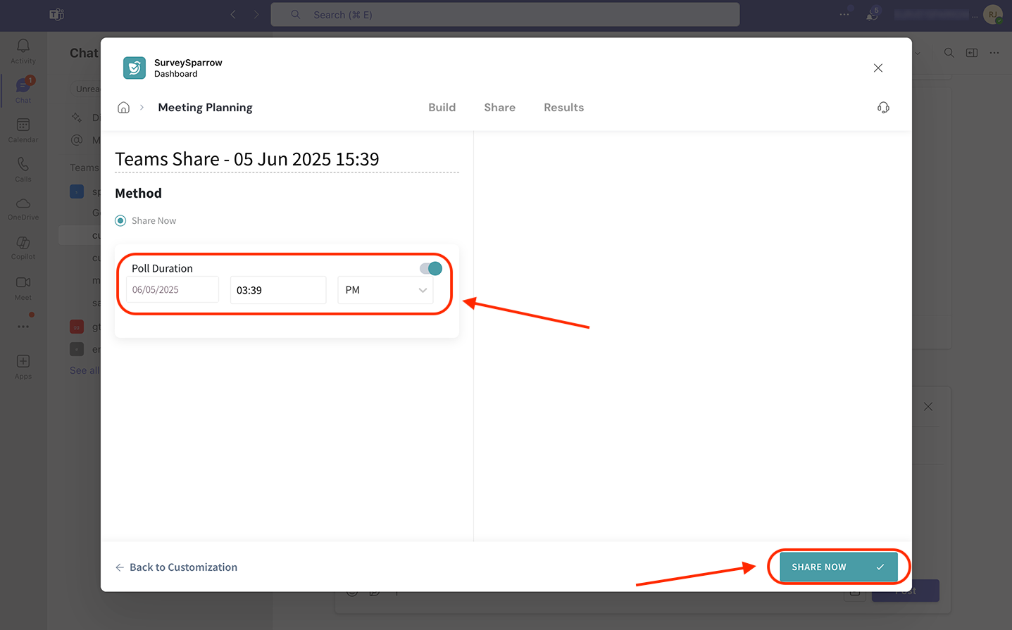 - Sharing polls inside Microsoft Teams