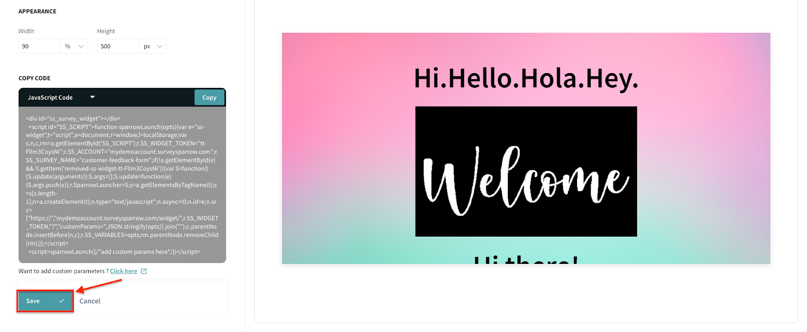 - Now that you have copied the desired code snippet, paste the code anywhere between the <body></body> tag of your html code to register the survey widget.