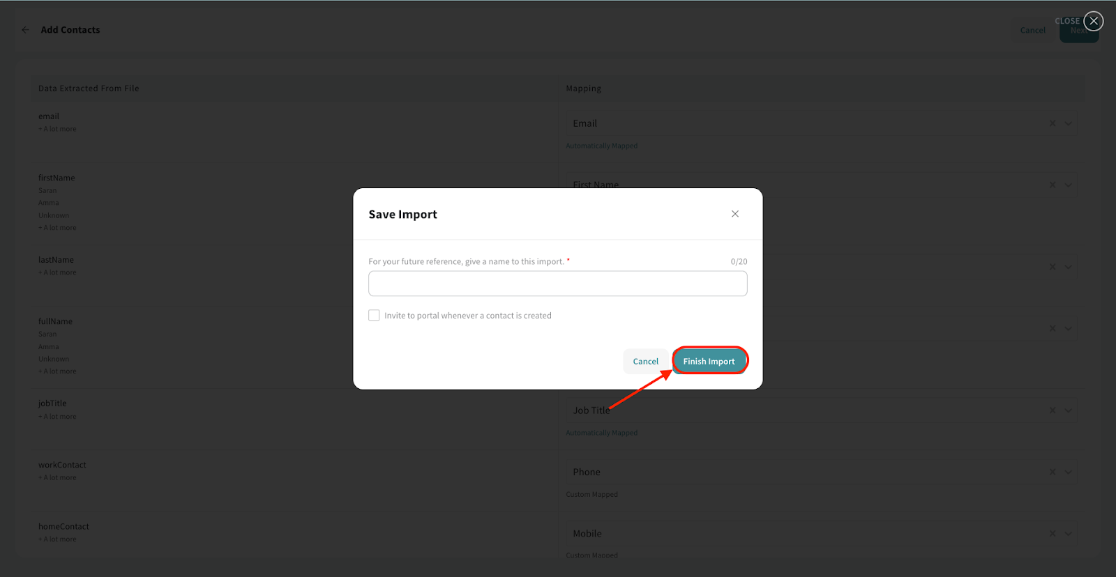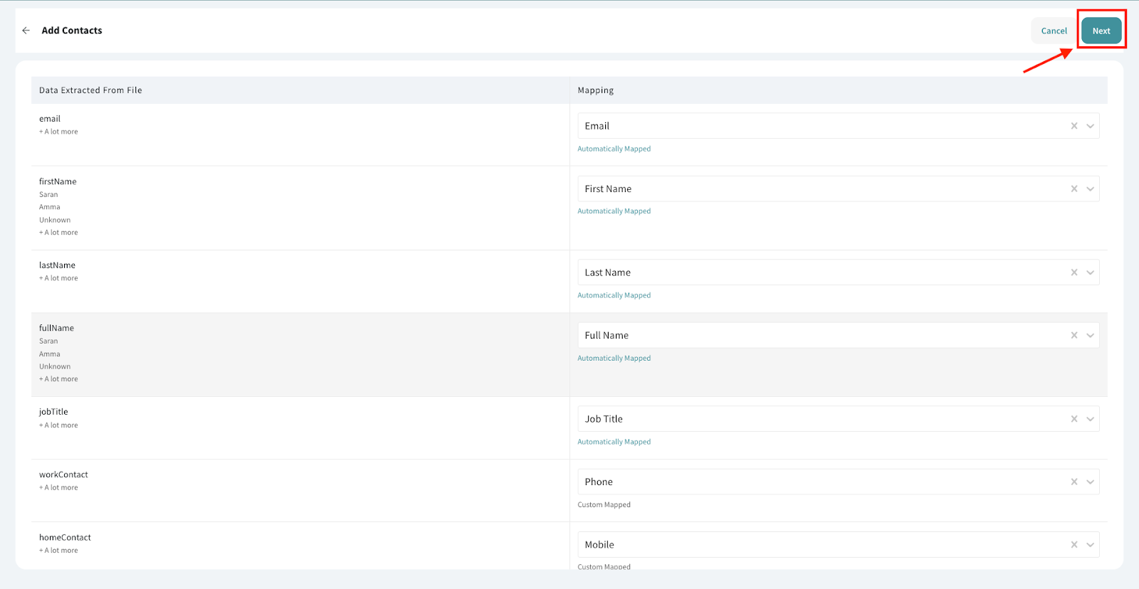 8. Map the contact properties to their respective fields for a smoother process of importing contacts.