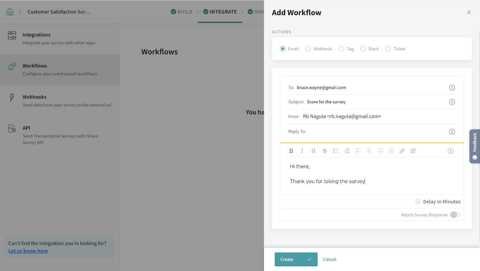 Let's say you are conducting a quiz for your audience, and you want the quiz score to be sent along with a copy of the responses to the respondent’s email. This can be achieved using Workflows.