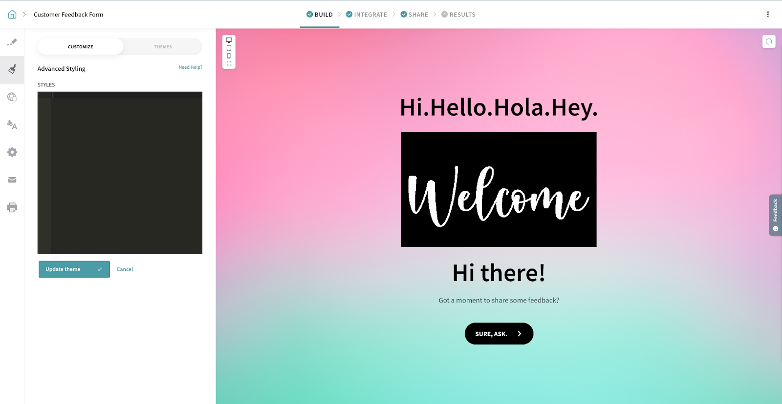 Enjoy adding your own personalized style to your survey themes! Please reach out to us if you’re looking for more specific CSS customizations for your surveys. We are just a chat away!
