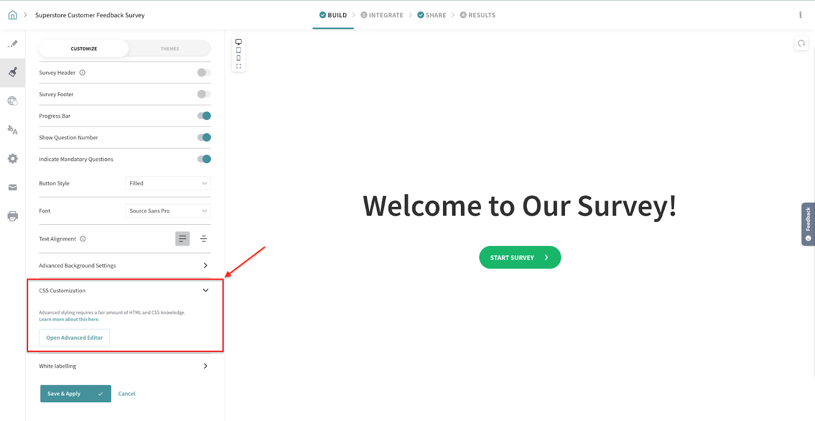 Personalize every aspect of your survey theme effortlessly with Custom CSS